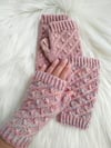The Veela Beanie is one of my very first patterns and it’s finally getting matching mitts! Featuring the same slanting stitches and floral arrangement in between, this will work up beautifully in a single ply yarn. Pattern includes both fingerless and full coverage mittens.
