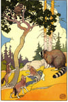 Here we read of Washer’s first adventures and how he was carried to the wolf’s den and looked after by mother wolf who saves washer’s life. Later she adopts Washer. As in all such situations there comes a time when Washer learns he is not a wolf. He is initiated into the wolf pack but saves the life of a fellow raccoon. We also read of how Black Wolf defies the pack and of Washer’s journey to the silver birch grove. Later Washer is freed by strangers and after wandering about the forest, is reunited with his mother and brothers.