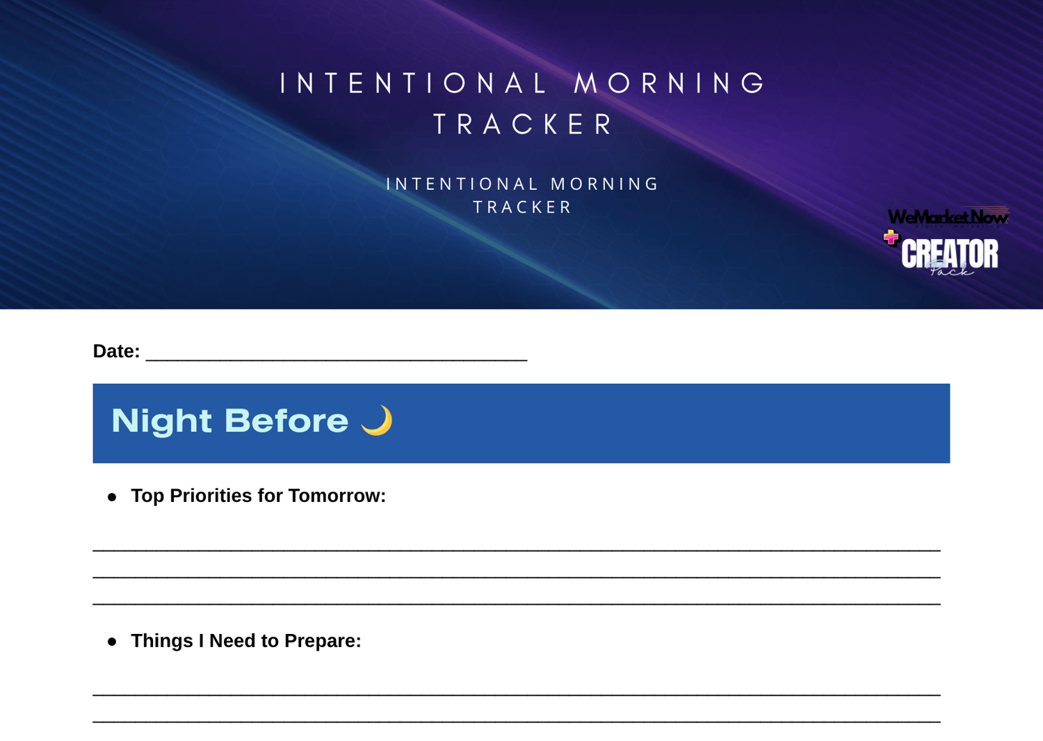 - Fill it in the night before to decide your intention