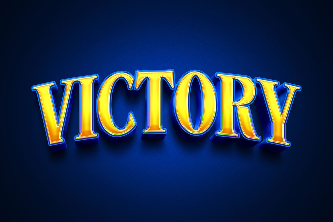 Bold, 3D golden style with a luxurious and vibrant look. A soft blue glow and shadow surround the letters, enhancing the contrast against the dark blue background and making the text appear illuminated.