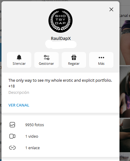 You will have access to my private channel where you can see my complete private erotic portfolio forever. An uncensored, explicit, private erotic portfolio, with real people and powerful photography, totally unprecedented.