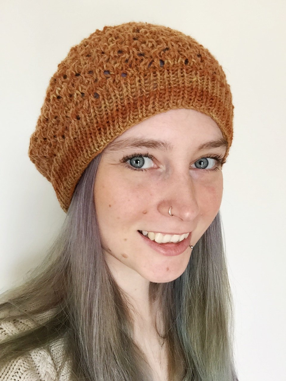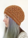Minerva, the Roman goddess of poetry and wisdom, is also the patron of weaving. A delicate, beret-style slouchy hat, the ‘basket-weave’ appearance of this beanie’s lace will both keep your head warm and add a dash of style and elegance to your everyday wardrobe. It is worked top down and in the round, so you can try it on as you go and ensure you end up with the perfect hat to suit your own style!