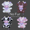❥ Two cow plushies, one small and fluffy, the other big and smooth.