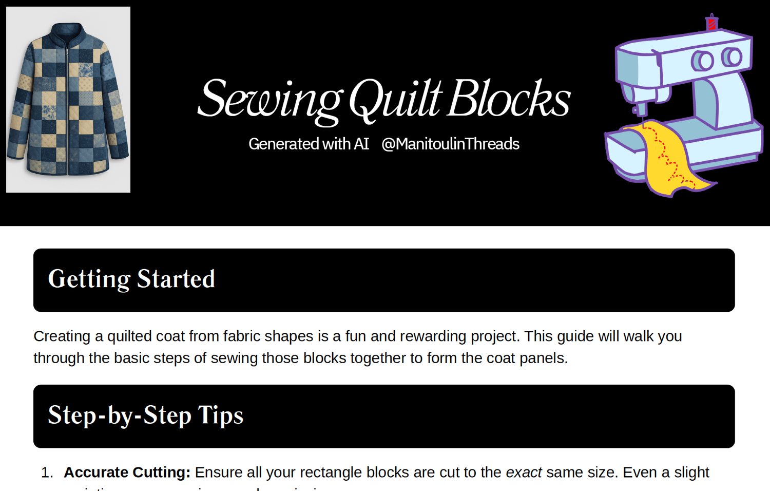 A list of tips and videos to get started with the sewing of your quilted coat fabric.