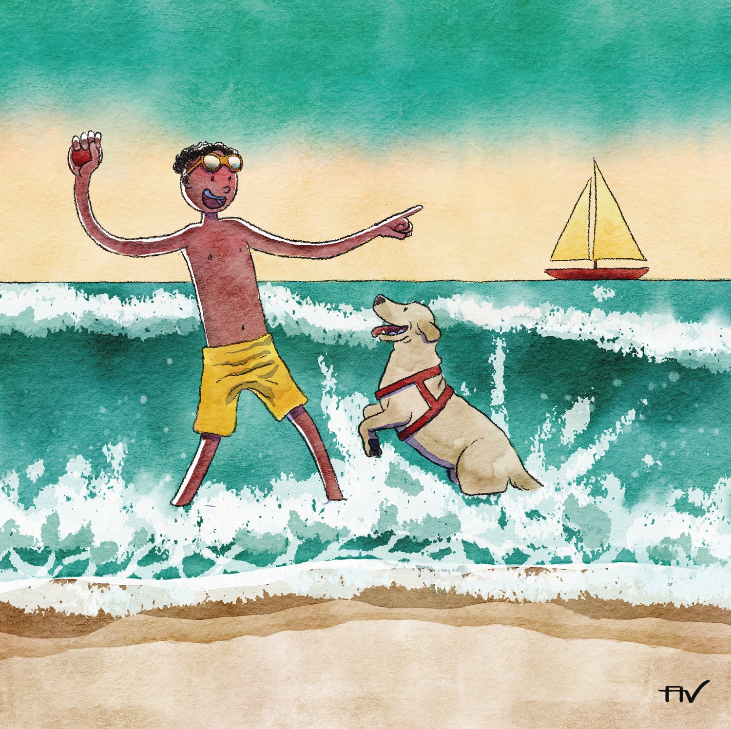 Original illustration from the Sam & Oscar series, in a square format, perfect for decoration.