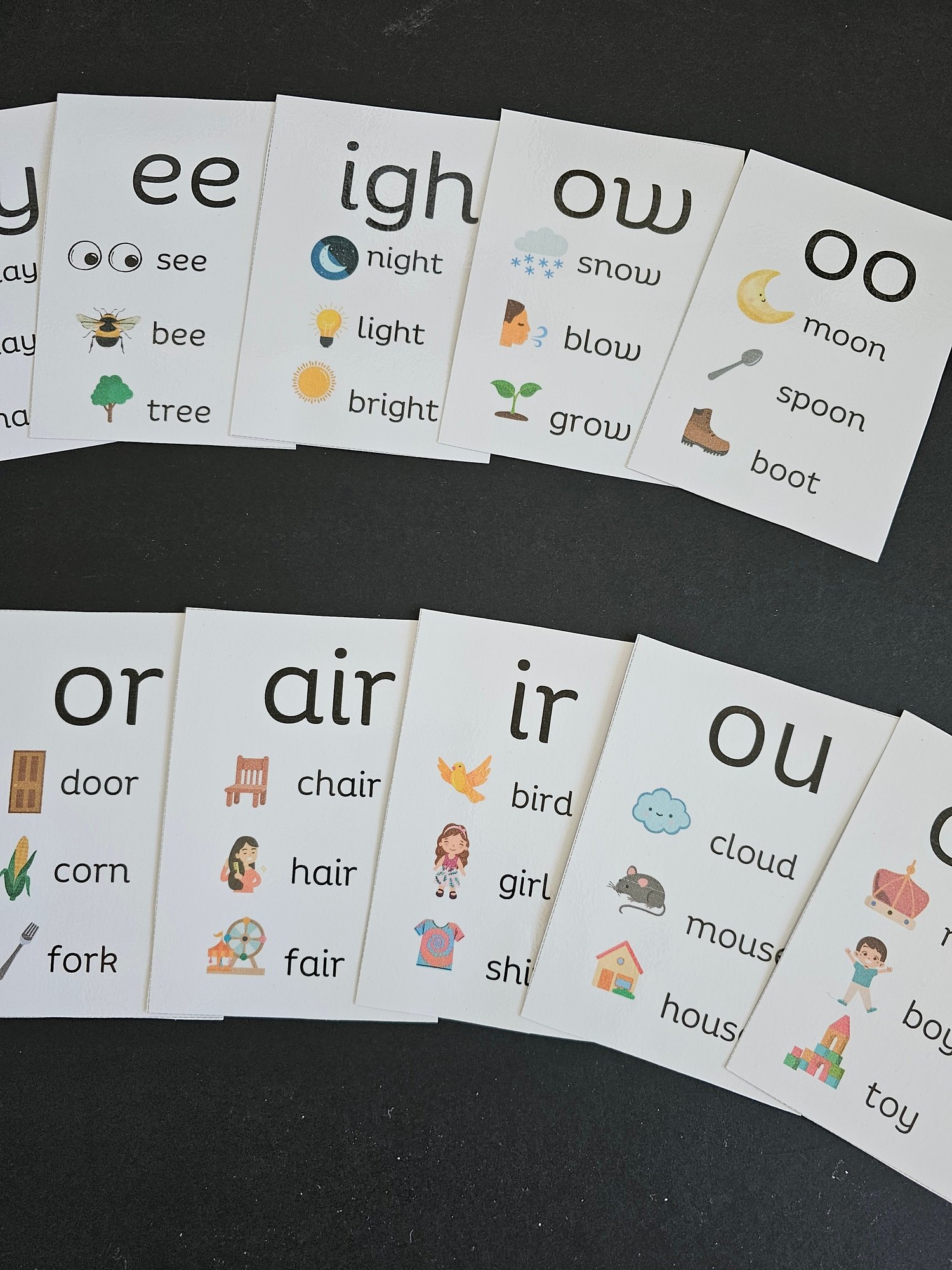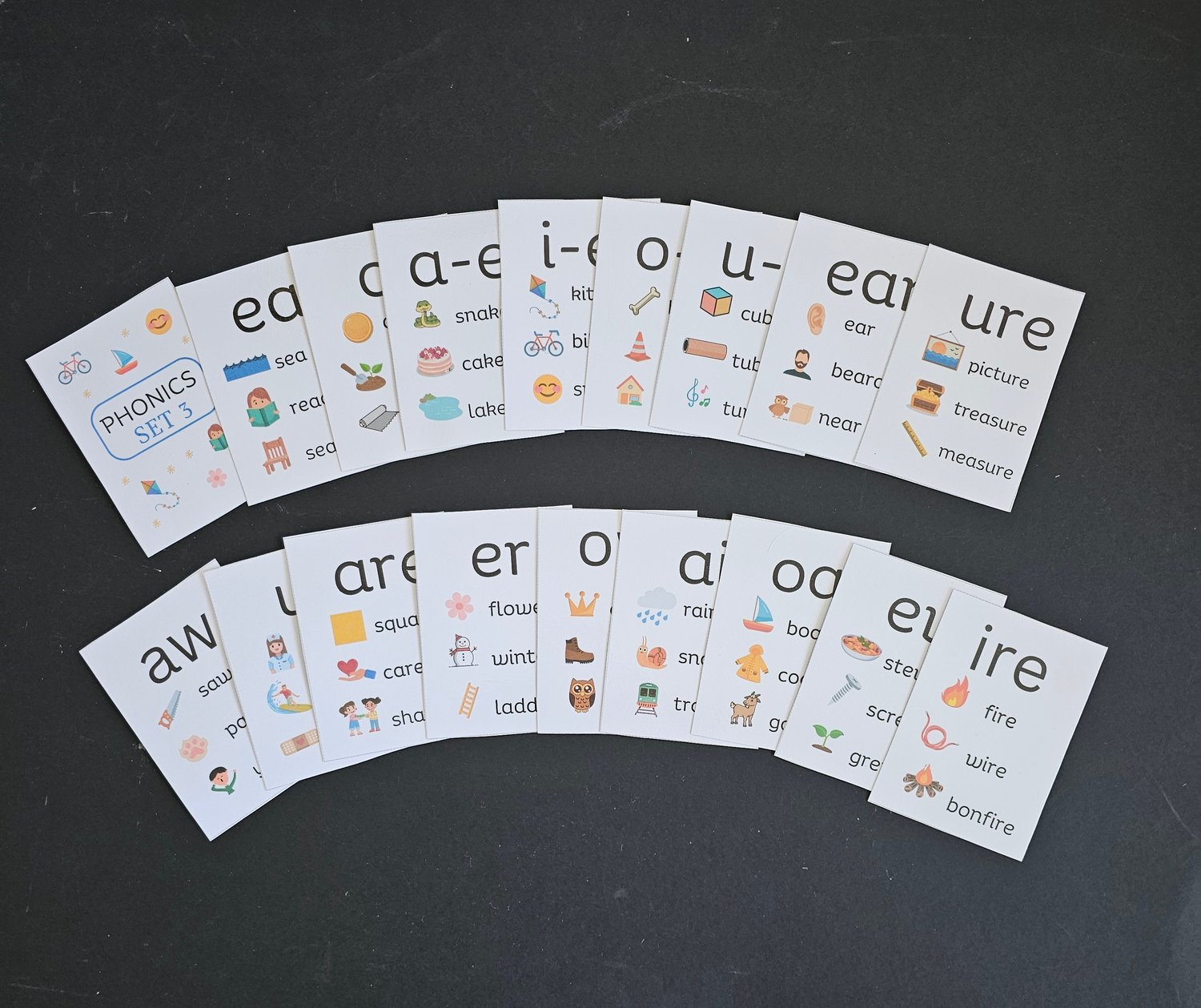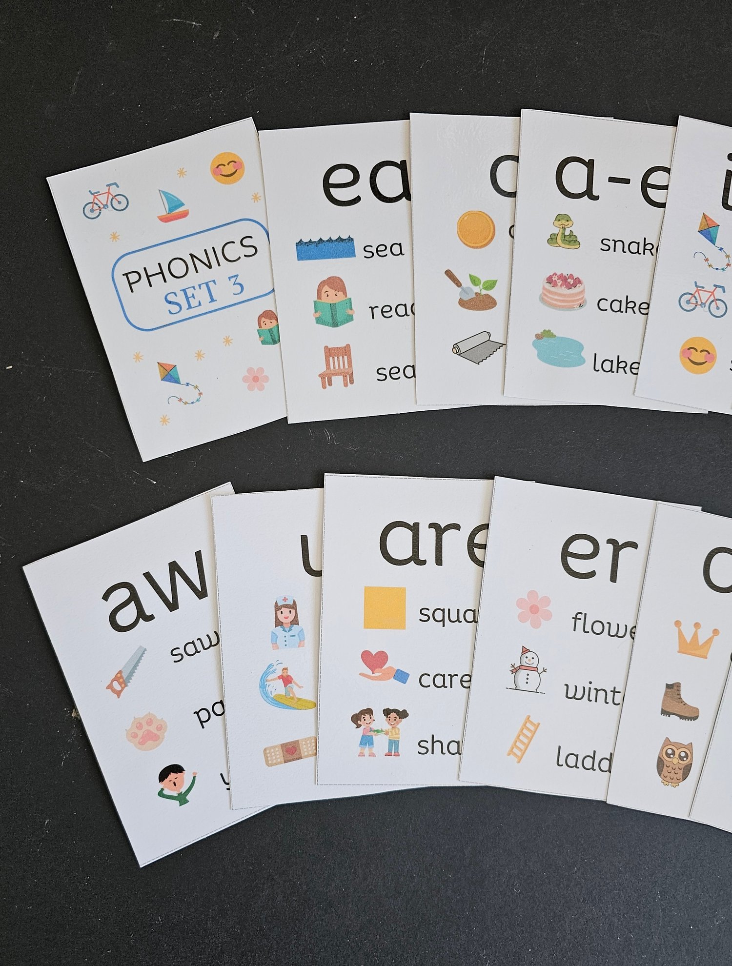 Phonics Set 2 flashcards Early Years Resource, UK Phonics, EYFS, Homeschooling