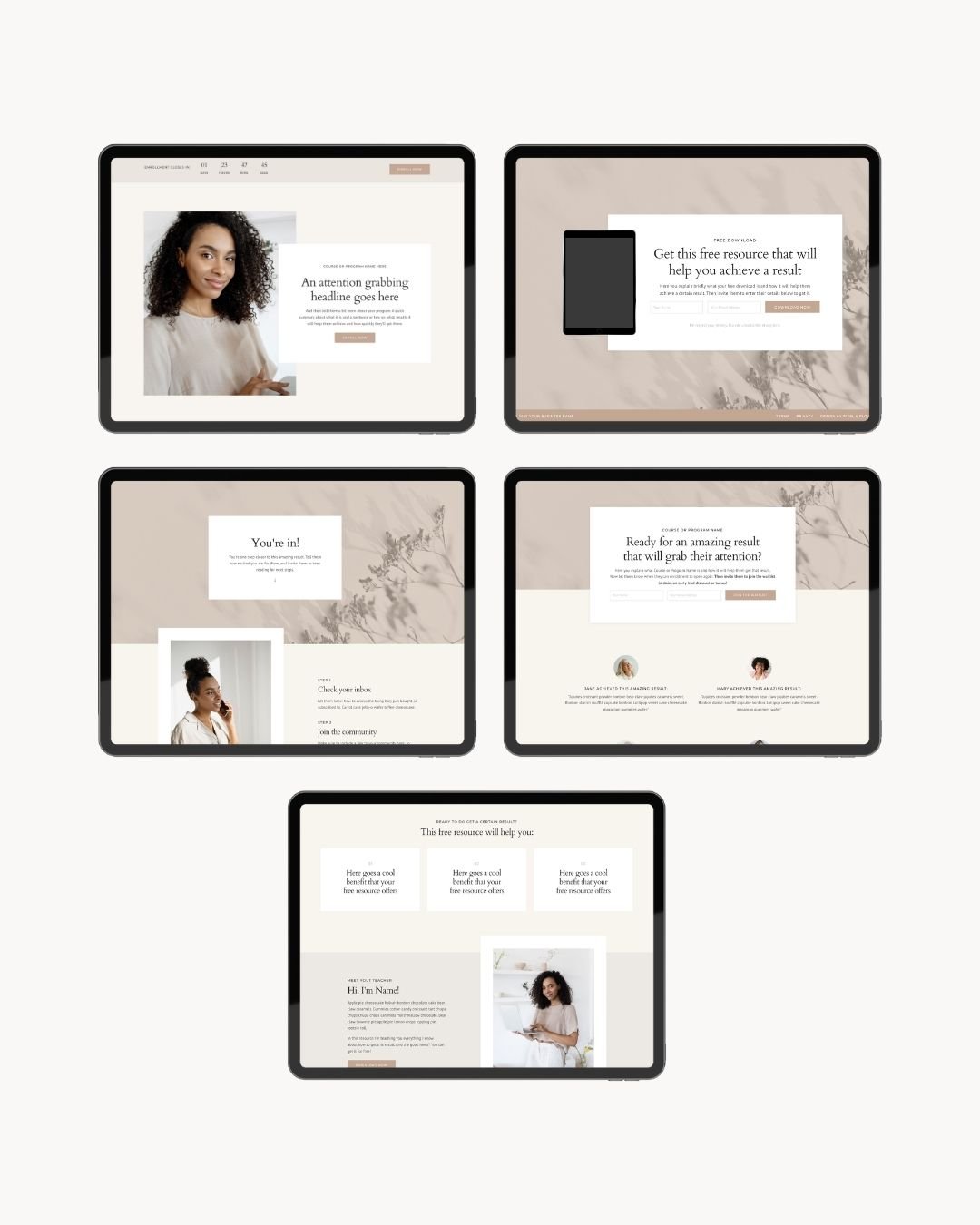 - Instant access to all 5 Kajabi landing page templates