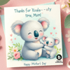 Show your appreciation with this heartwarming Mother's Day card featuring adorable Koala characters! The pun 'Thanks for KOALA-TY time, Mom' adds a delightful touch to this wholesome greeting.