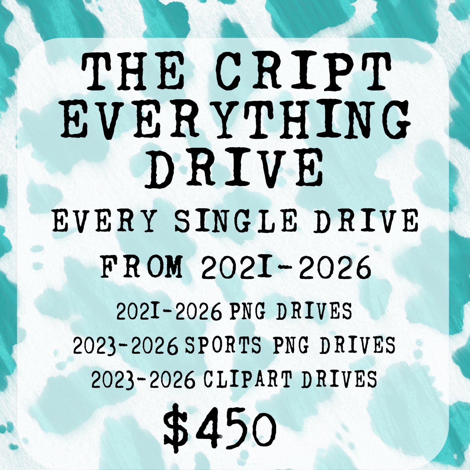 The Cript everything drive includes everything in the 2021-2026 PNG, sports & Clipart drives.