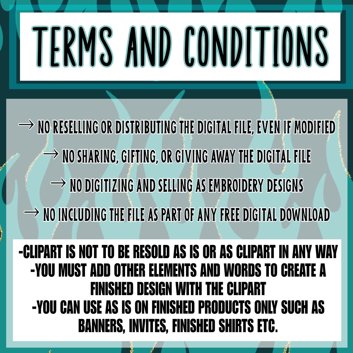This file is not to be resold as a digital file, sold as clip art, traded, shared, or given away.