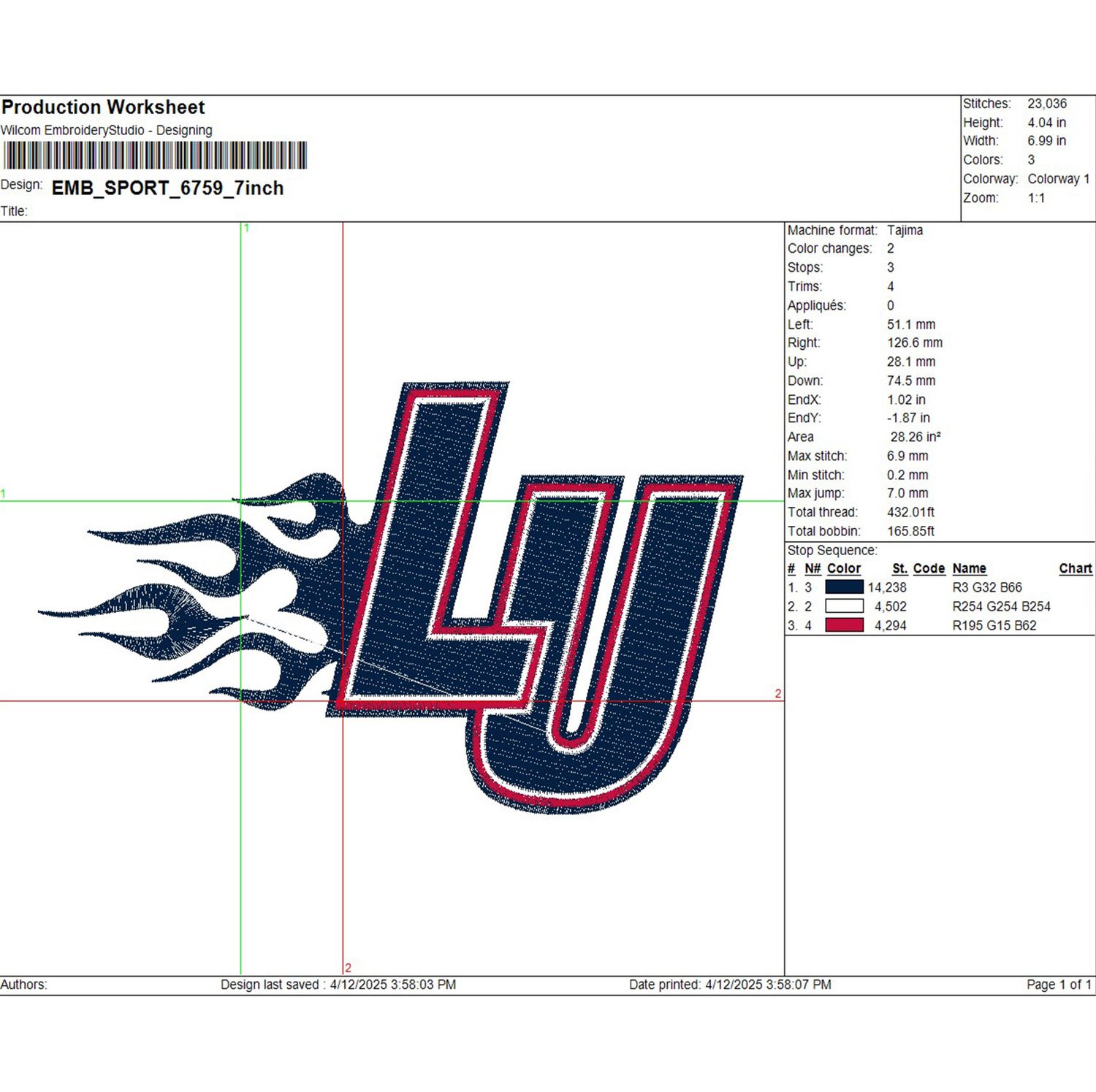 Liberty Flames Logo Embroidery Designs, NCAA Liberty Flames Machine Embroidery Designs, NCAA Logo Machine embroidery designs, Ncaa LU Flames Logo, Digital Download