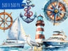 Watercolor Nautical Summer Sailing PNG Clipart Bundle