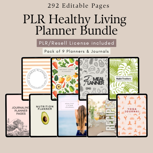 Transform your wellness brand or digital product shop with this Healthy Living Planner Bundle, featuring 9 premium planners, all with Private Label Rights (PLR). Perfect for health coaches, fitness creators, wellness bloggers, nutritionists, and digital product sellers who want to offer high-value, beautifully designed wellness tools — without starting from scratch.