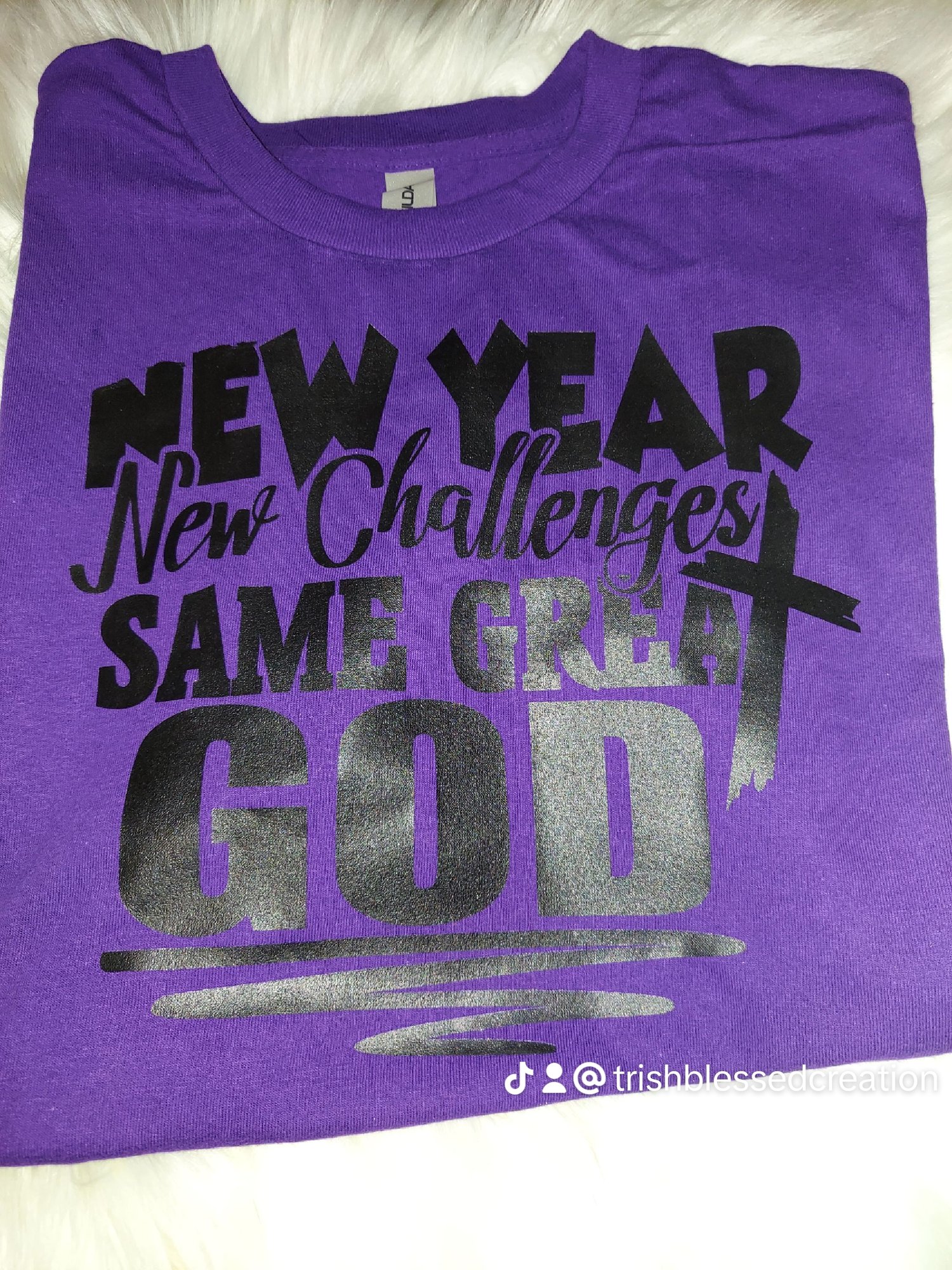 this new year challenges same great god t-shirt is perfect for celebrating the arrival of the new year. whether you wear it b to a party, while running errands, or judt lounging at home this shirt will bring a postive and inspring message with you whereever you go. we aaim to provide you with the highest quality products and this t shirt is no exception.