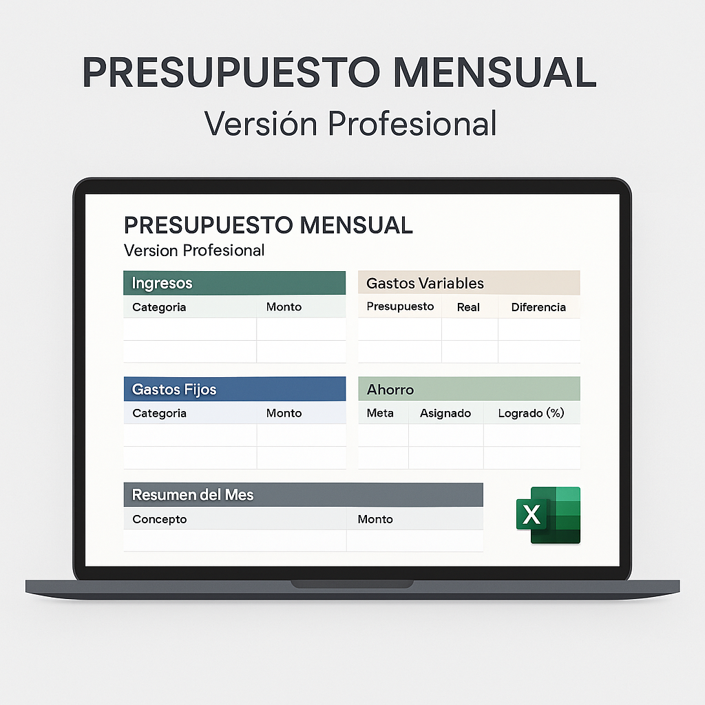 🌟 Plantilla de Presupuesto Mensual Profesional (Excel + PDF)