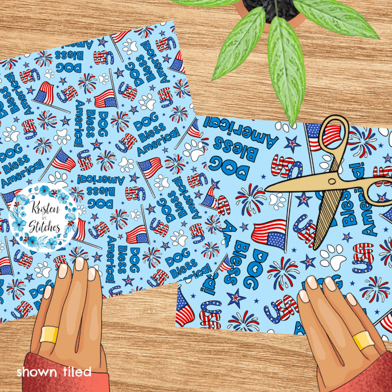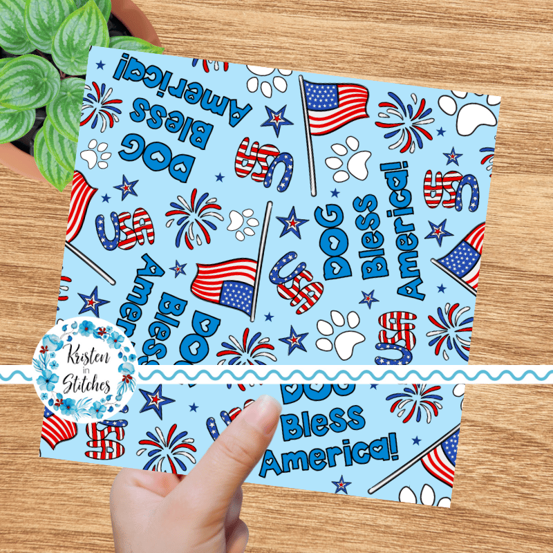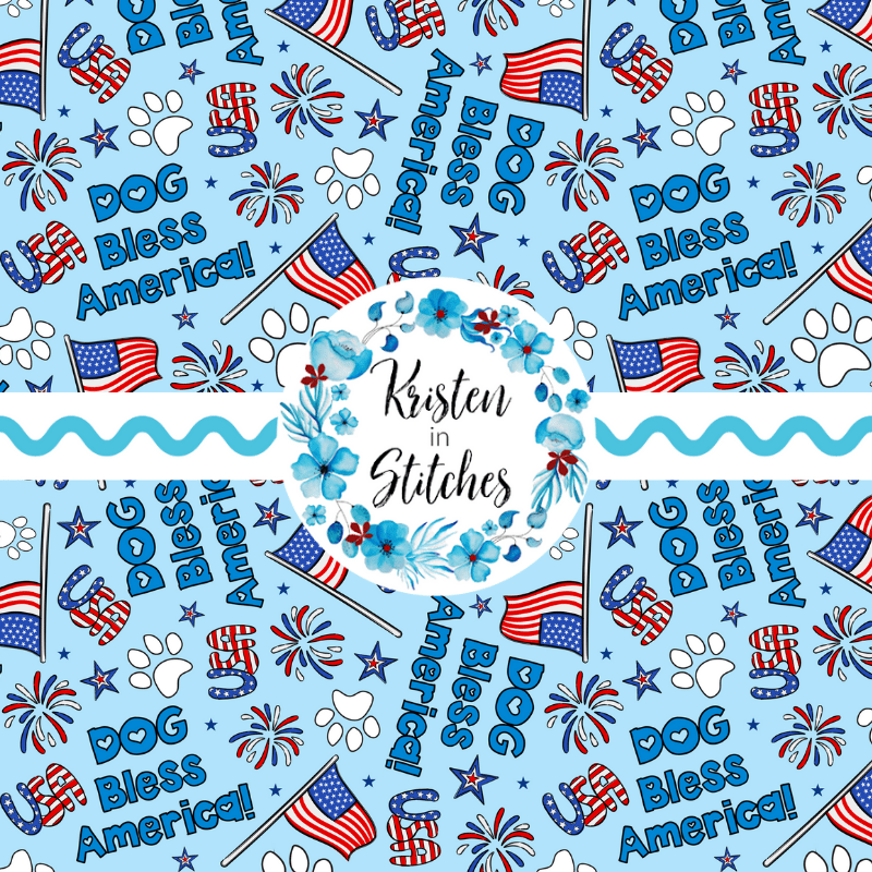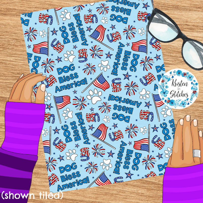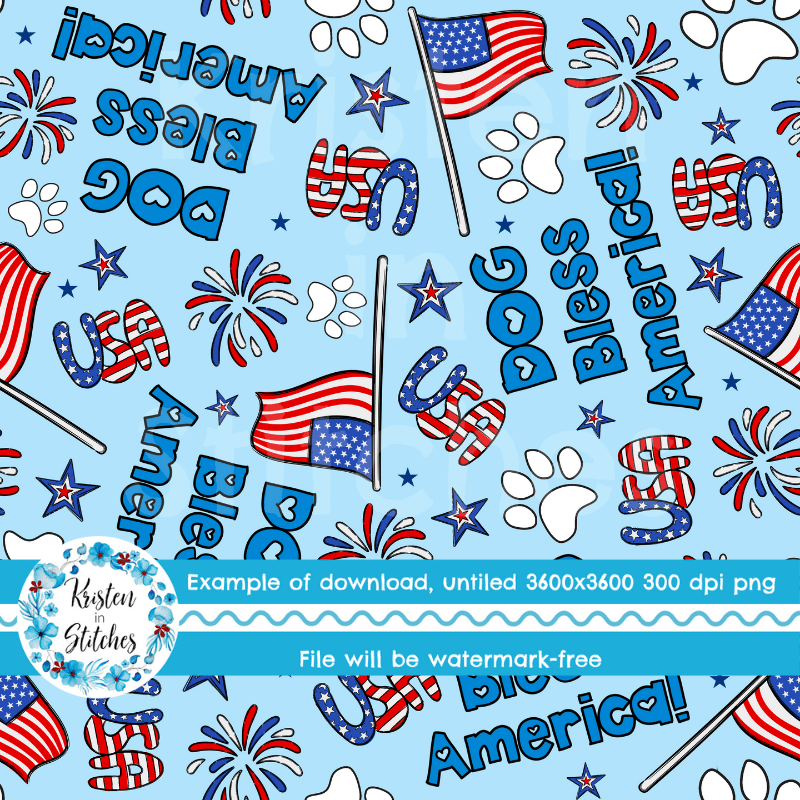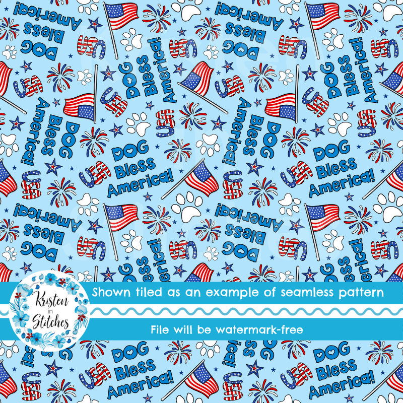 Dog Bless America Patriotic Seamless Pattern, God Bless the USA, Red White Blue