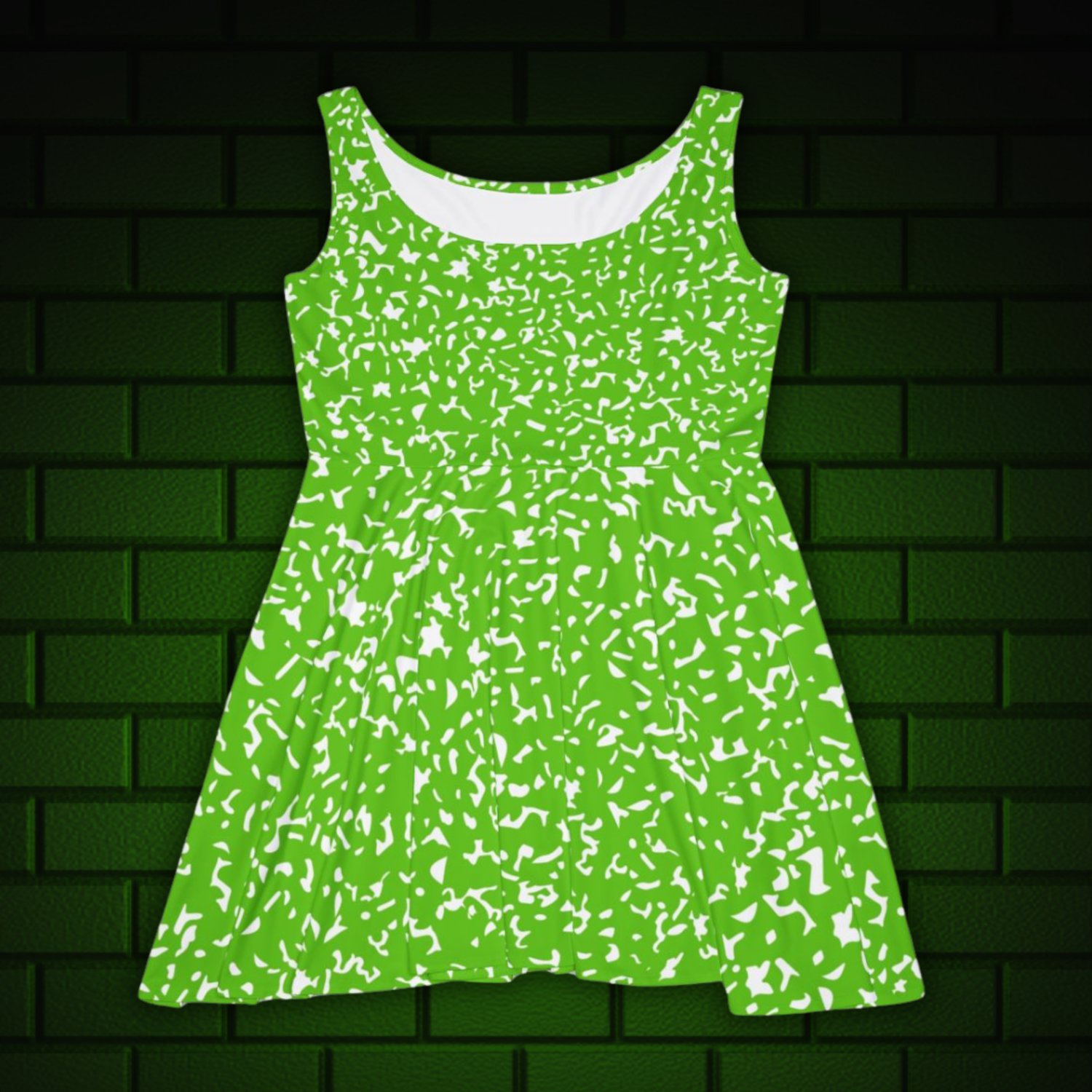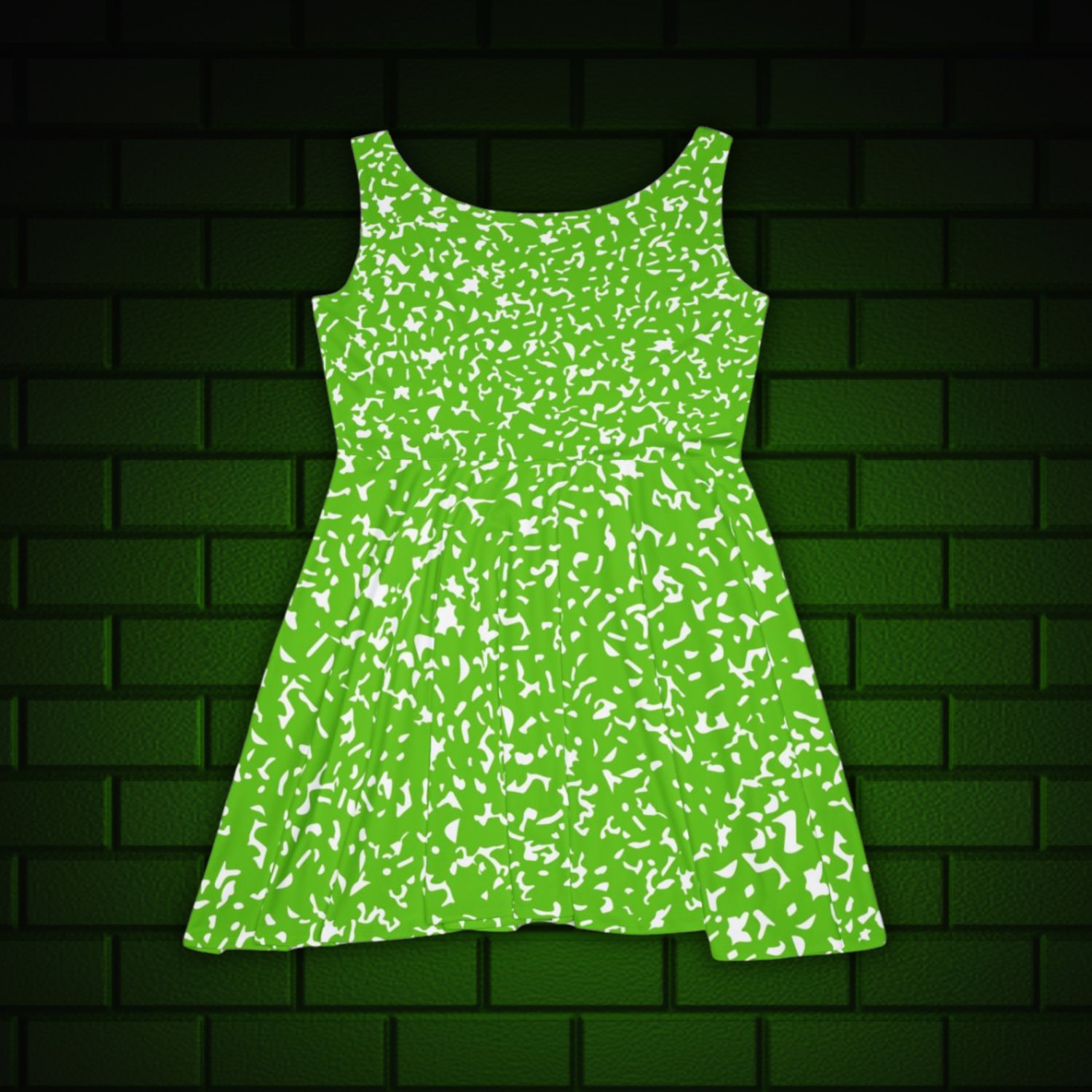 Lime Green Composition Notebook Women’s Skater Dress – Fun Summer Fashion, Casual Party Outfit, Bold Pattern Dress with Asymmetrical Skirt