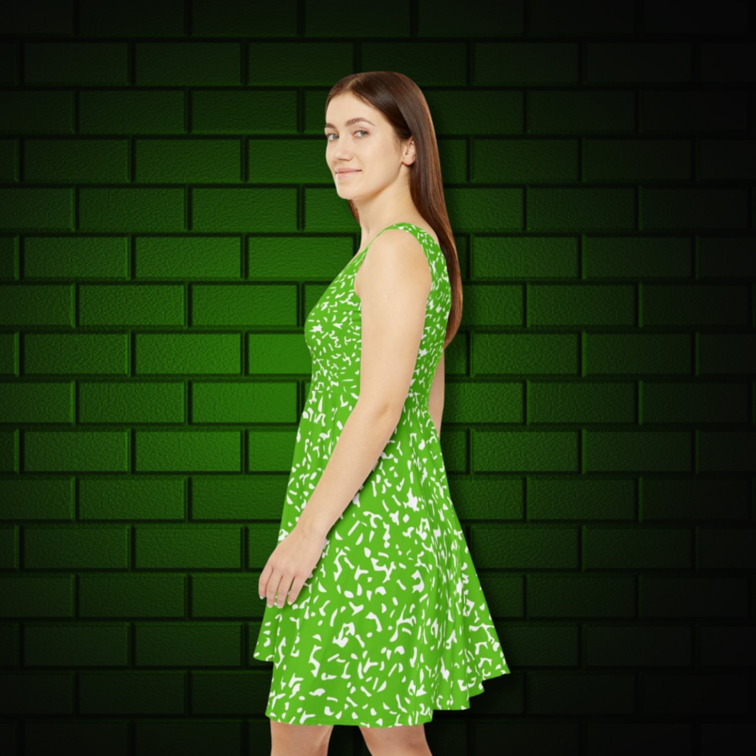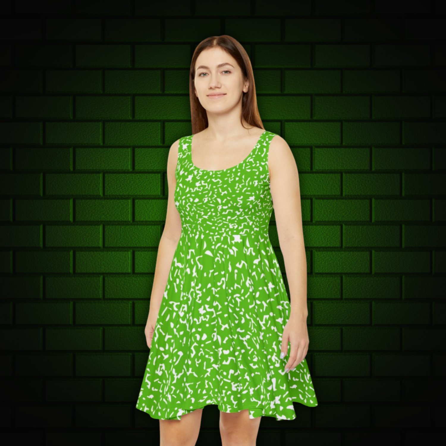 Step into bold, playful style with our Lime Green Composition Notebook Women’s Skater Dress — a head-turning piece that blends comfort with statement-making fashion. The high-cut scoop neckline flatters every figure, while the asymmetrical skirt adds a touch of flirty movement to your look. Perfect for summer outings, casual parties, or just brightening up an everyday moment, this vibrant dress is ready for picnics, park strolls, and sunny celebrations. Its lively lime green pattern gives your wardrobe an instant pop, making it a must-have for fashion lovers who want to stand out in style.