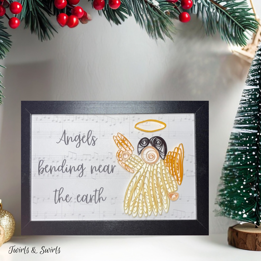 This handcrafted quilled angel captures the quiet wonder of Christmas—the moment heaven touched earth with peace, hope, and joy. Display it on your mantel, entryway, or beside your nativity to remind your heart of the miracle that started it all. It’s a gentle whisper of “Glory to God in the highest,” woven into art.