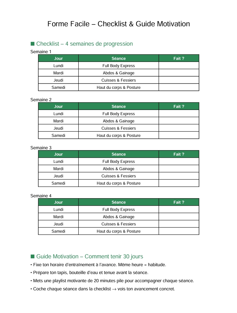 30 JOURS POUR SE REMETTRE EN FORME (Checklist + Guide motivation OFFERTS)