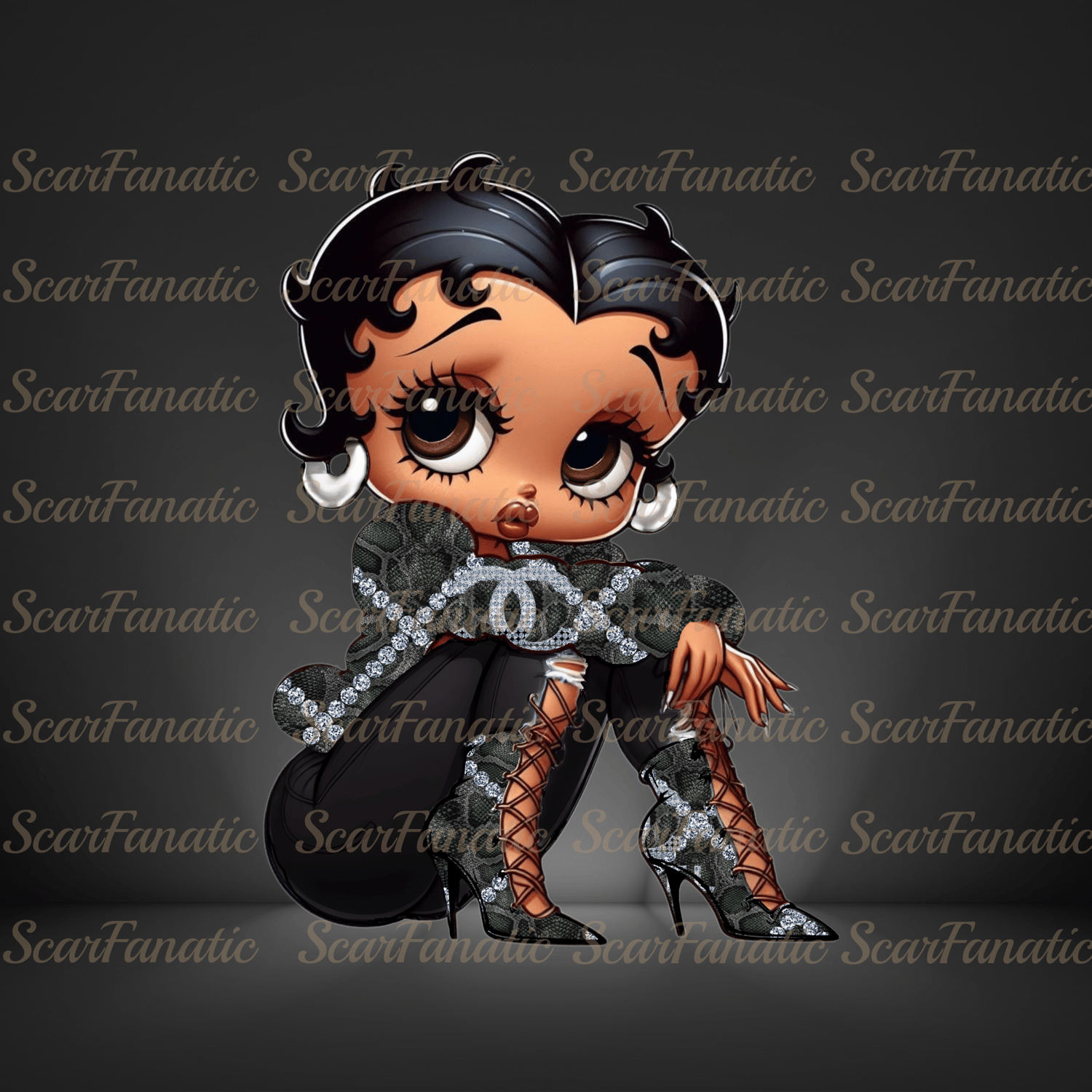 Black Betty Boop in green and black snakeskin jacket and heels, black jeans, high heel boots, Sublimation, PNG, DTF, 300DPI, high resolution