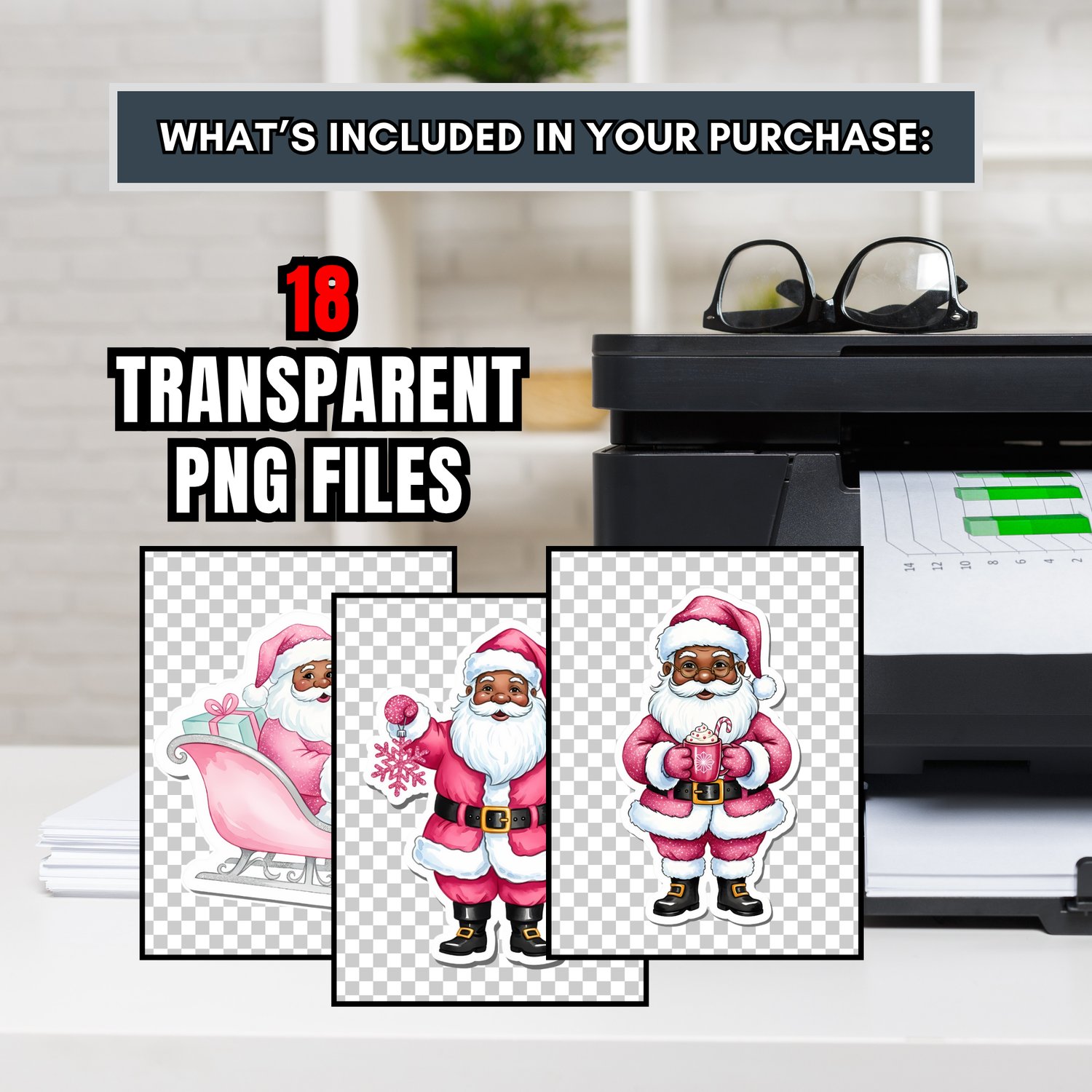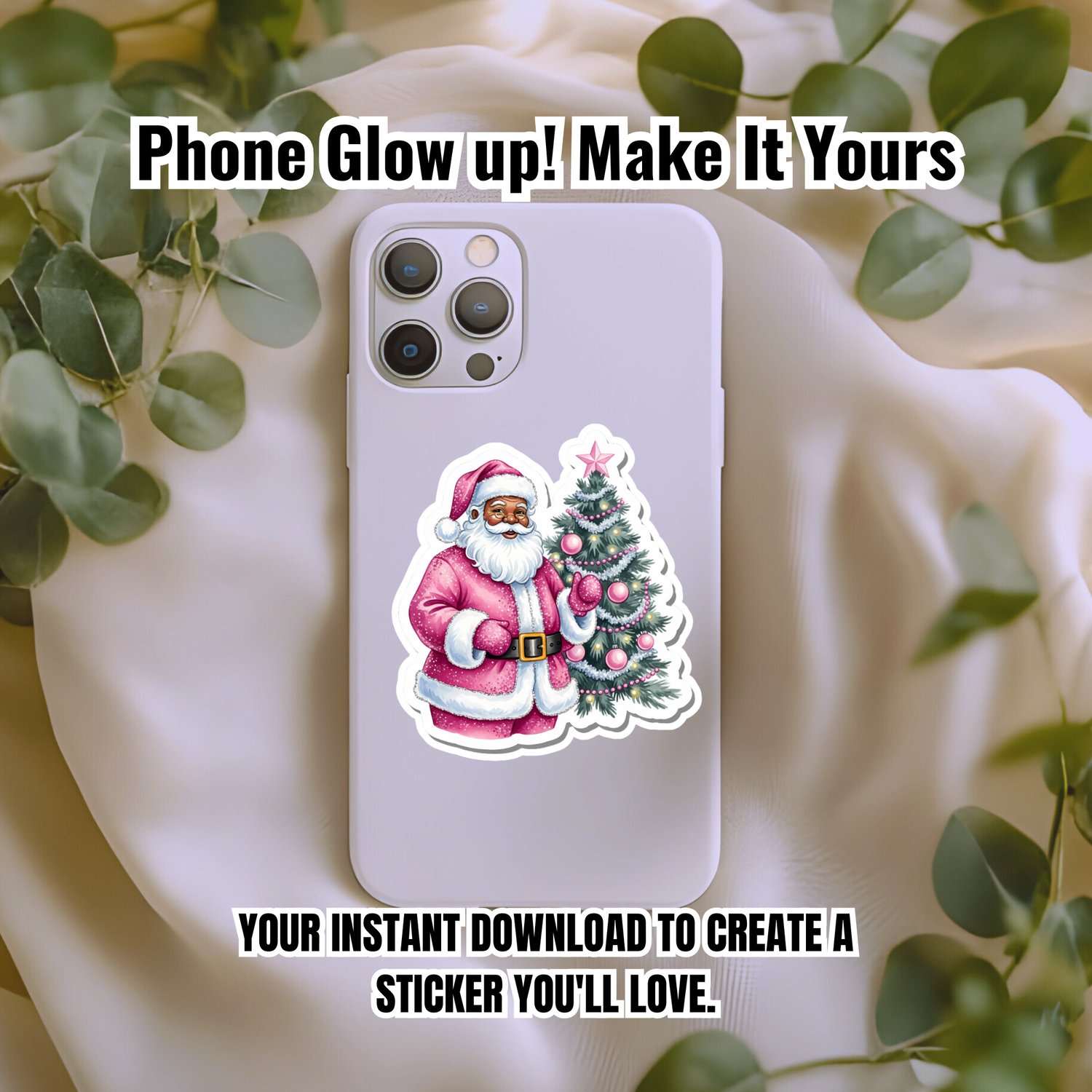 🎅🏾💖 Instantly Download Your Fabulous Pink Black Santa Stickers! ✨
