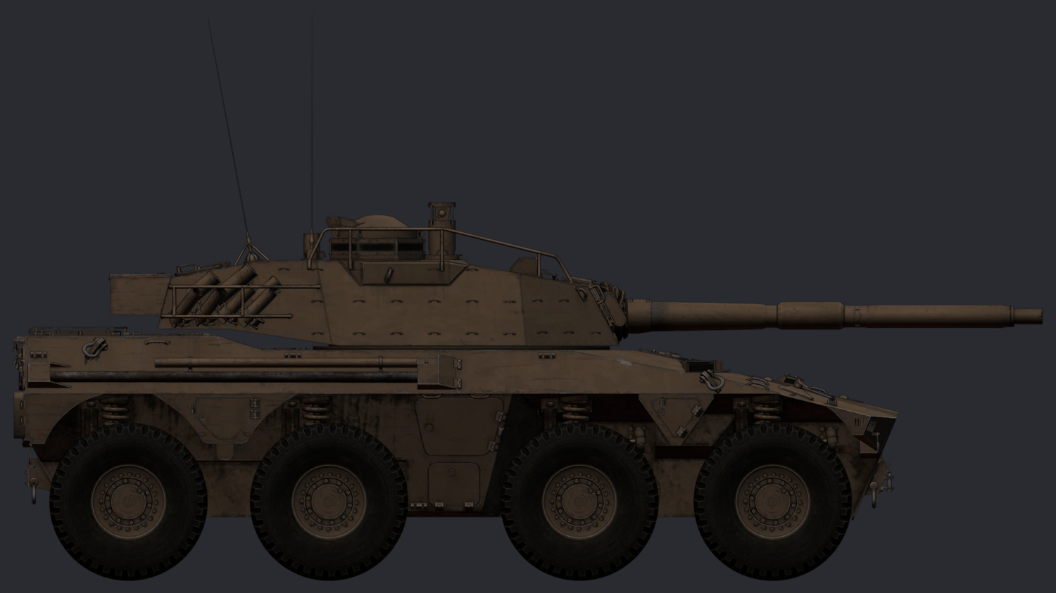The Rooikat 105 is a South African armored reconnaissance vehicle designed for high mobility and long range fire support. It is equipped with a powerful 105mm rifled gun, allowing it to engage main battle tanks and other armored targets effectively from a distance.