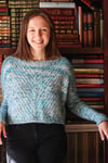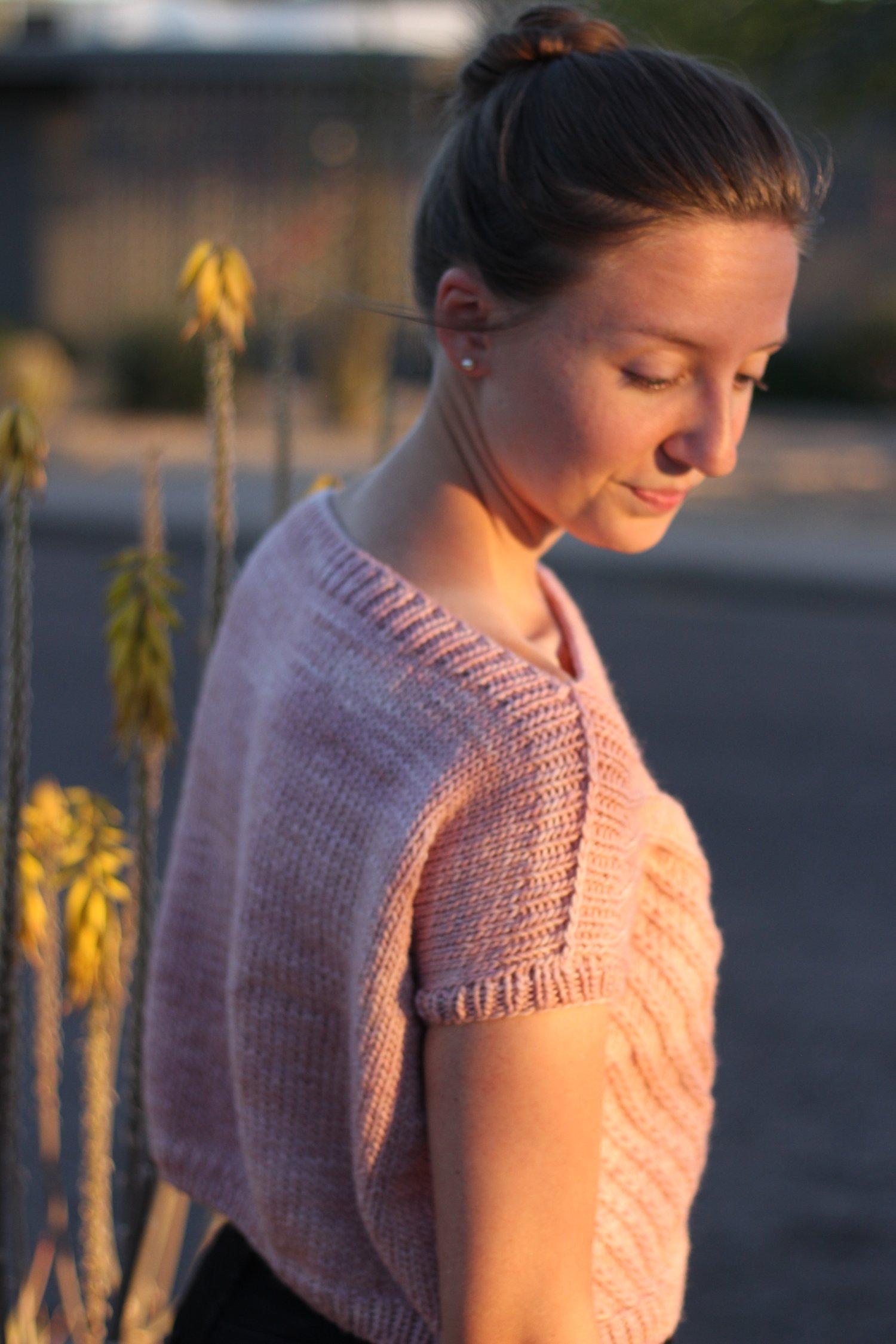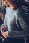 The Refracted Sweater is a comfy cropped pullover with a striking slipped stitch pattern and plenty of positive ease. It is worked in the round from the bottom up until the sleeve divide, at which point the front and back are worked flat separately and then joined with a three needle bind-off at the shoulders. The sleeves are then picked up and worked in the round from the shoulder down to the cuff, where 1x1 ribbing is worked until twice the length of the cuff for a comfy rolled cuff.
