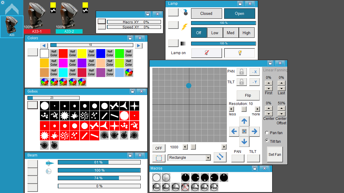 Librerías para Freestyler DMX del Cabezal Móvil "A33" de Pro Light UK. Es un 8R ( Beam 250W ).