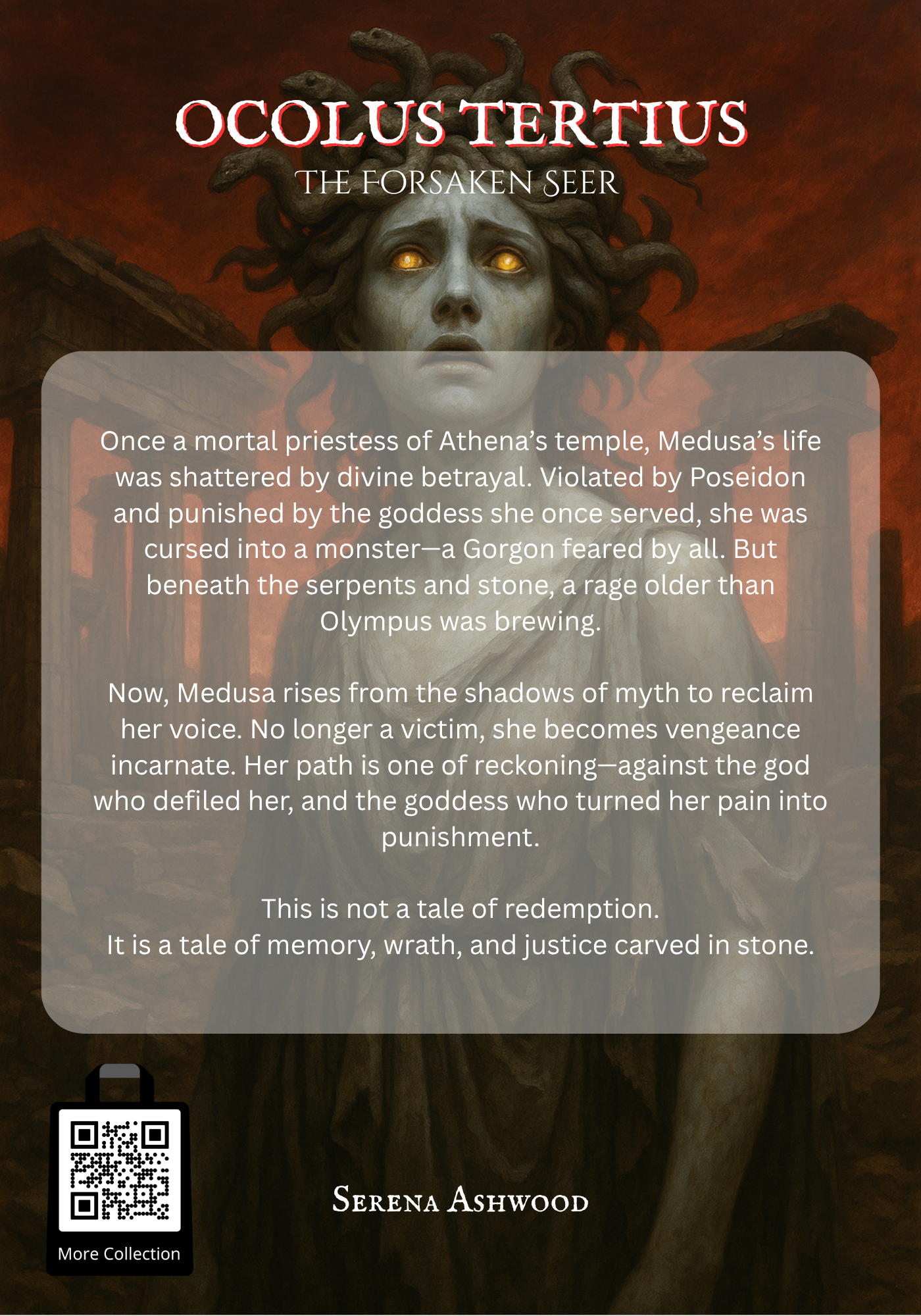 Now, Medusa rises from the shadows of myth to reclaim her voice. No longer a victim, she becomes vengeance incarnate. Her path is one of reckoning—against the god who defiled her, and the goddess who turned her pain into punishment.