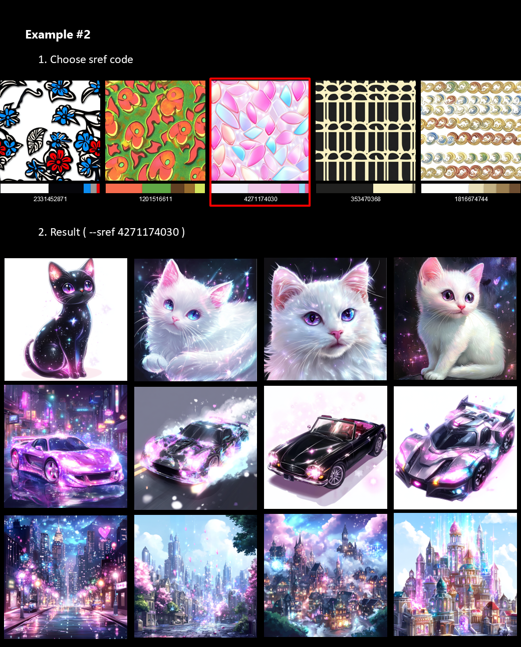 - Most sref codes will produce images with a similar style, but in some cases, the generated result may differ from the examples shown.