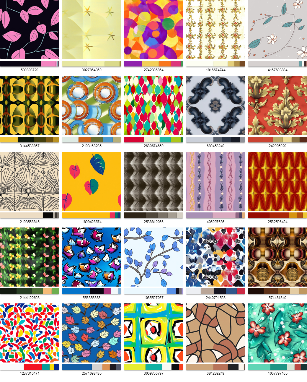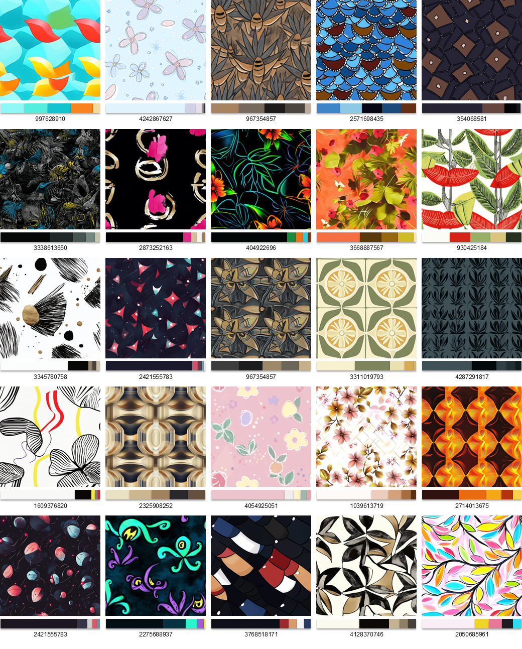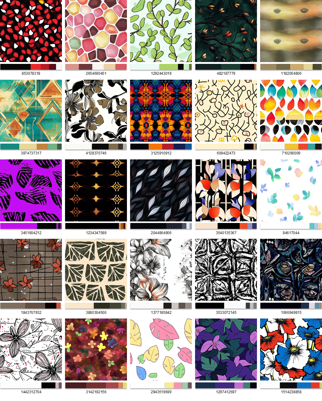 - Each image includes its color composition ratio, letting you identify and use the perfect palette for your projects.