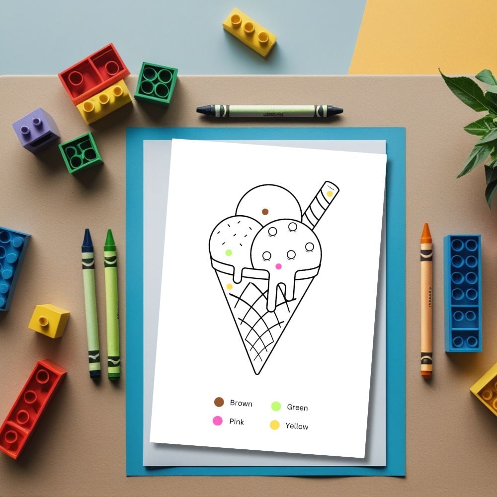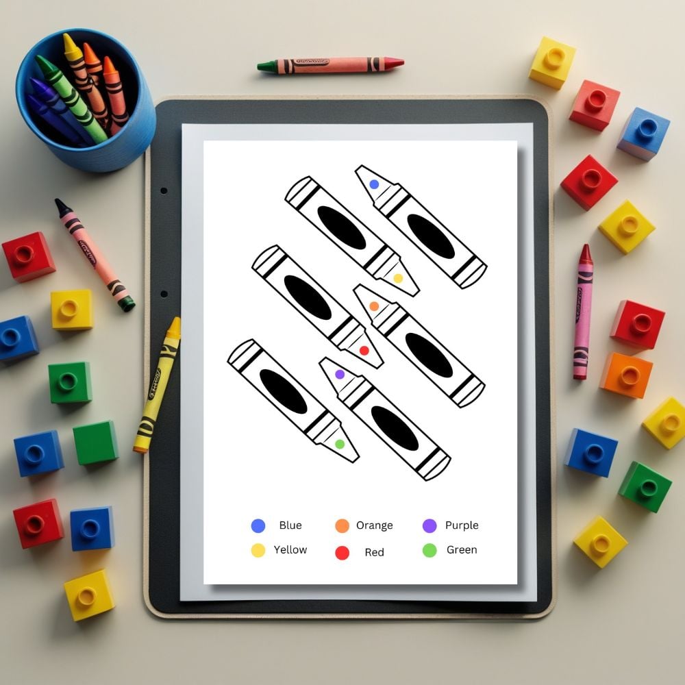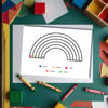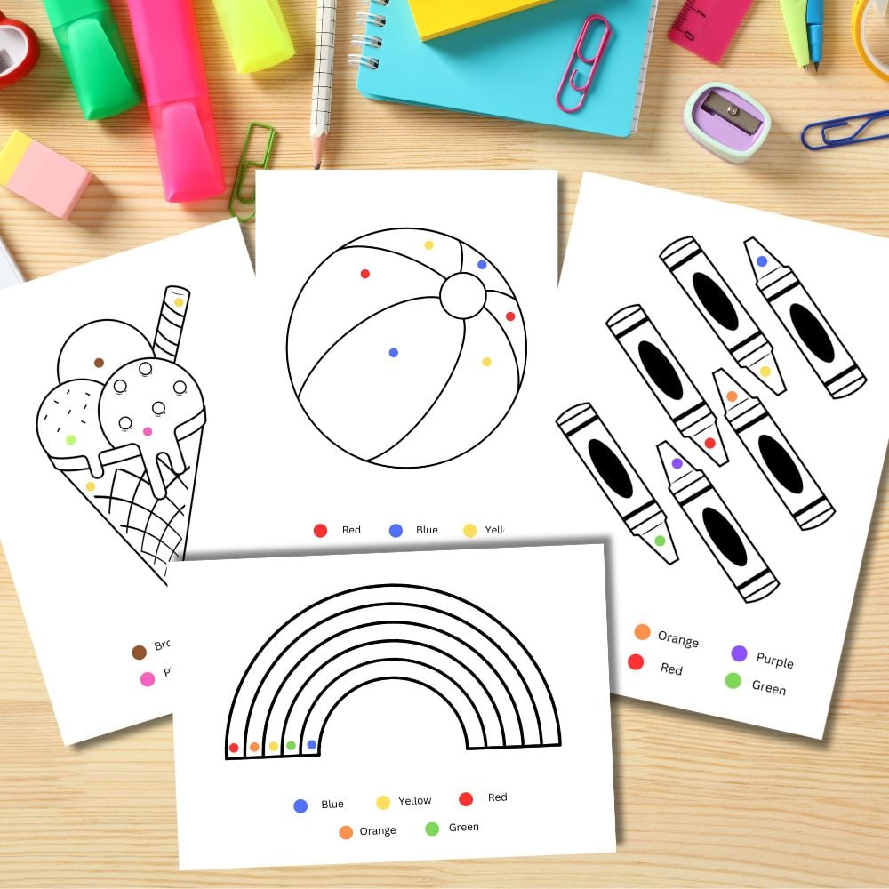 Four colouring sheets for preschoolers to learn primary and secondary colours names in English.