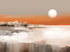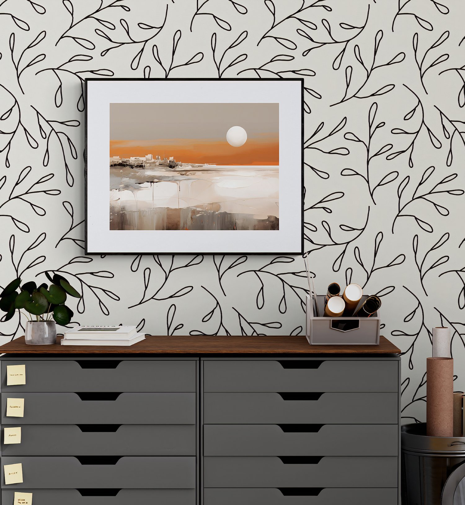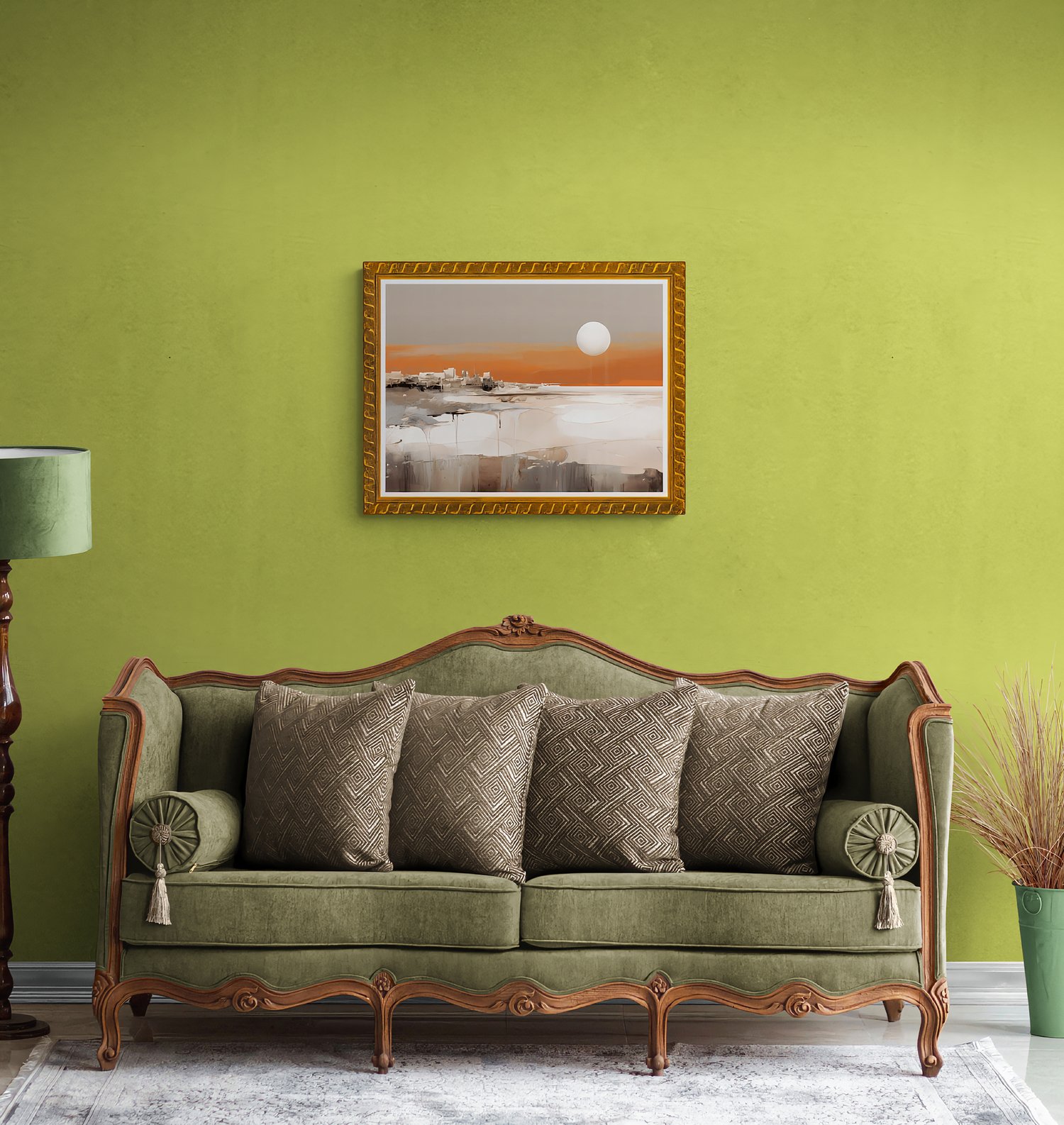 Visual Elements: This piece explores the profound beauty of isolated landscapes. The interplay of light orange and dark amber captures the quiet warmth of a beach at dusk, while the use of white and light brown lends a soothing, airy feel.