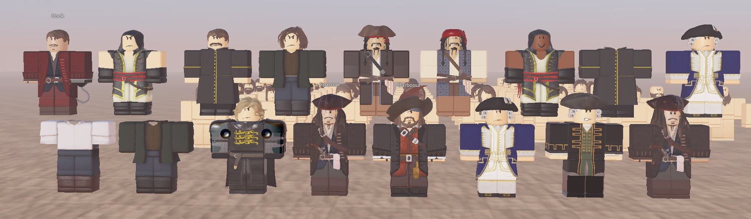 Pirates of the Caribbean clothing, particularly inspired by Jack Sparrow, features a layered, weathered, and romanticized 18th-century "buccaneer" aesthetic. Key elements include a white linen shirt, blue waistcoat, frock coat, patterned sash, multiple leather belts with ornate buckles, baggy trousers, and a tricorn hat. The look is defined by its rugged, filthy, and sun-scorched appearance.