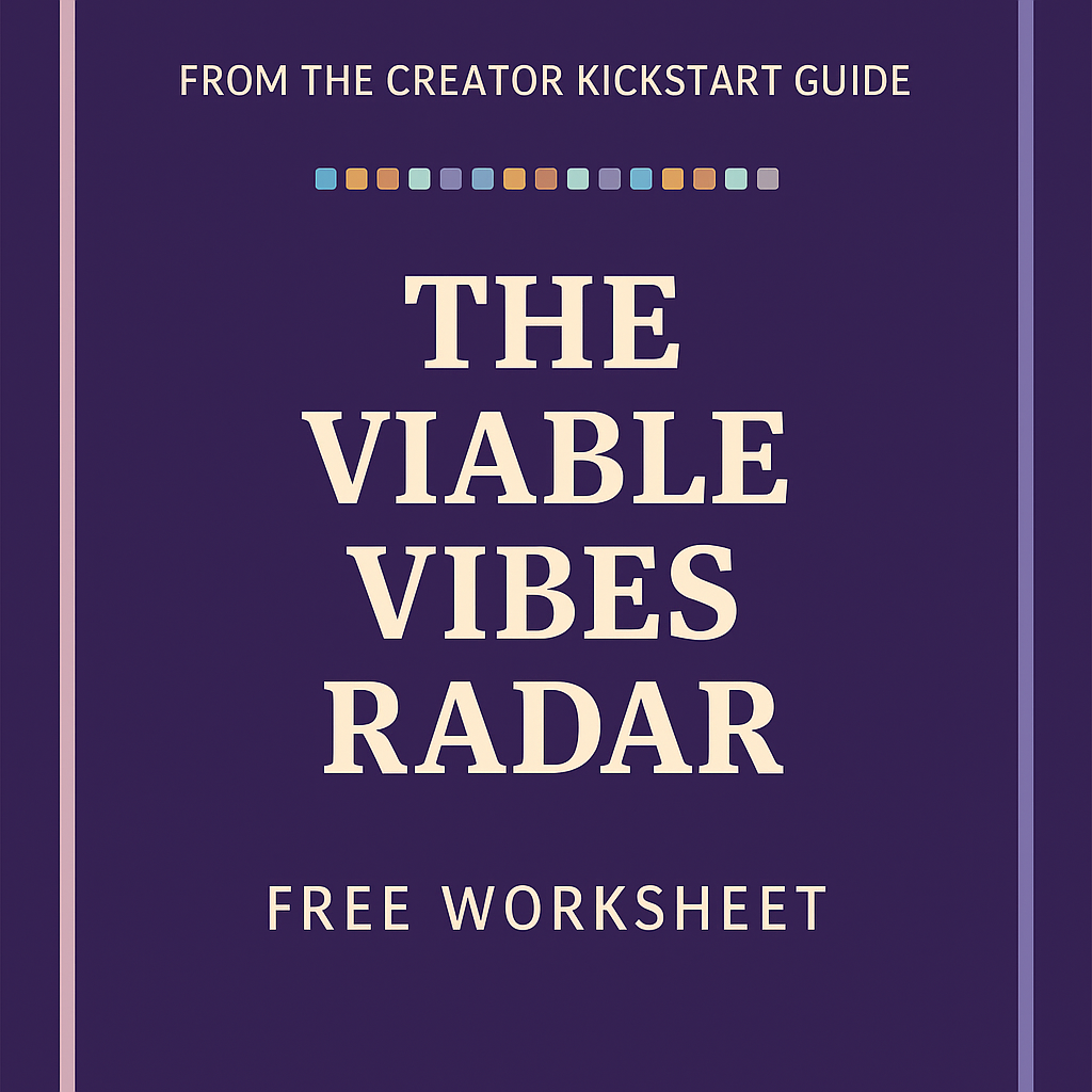 The Viable Vibes Radar is a super simple tool to help you figure out whether a niche or content idea is actually worth pursuing — or just sounds good in theory. You’ll rank a few quick prompts to see if something lights you up, makes sense for your life, and feels like something you actually want to stick with.