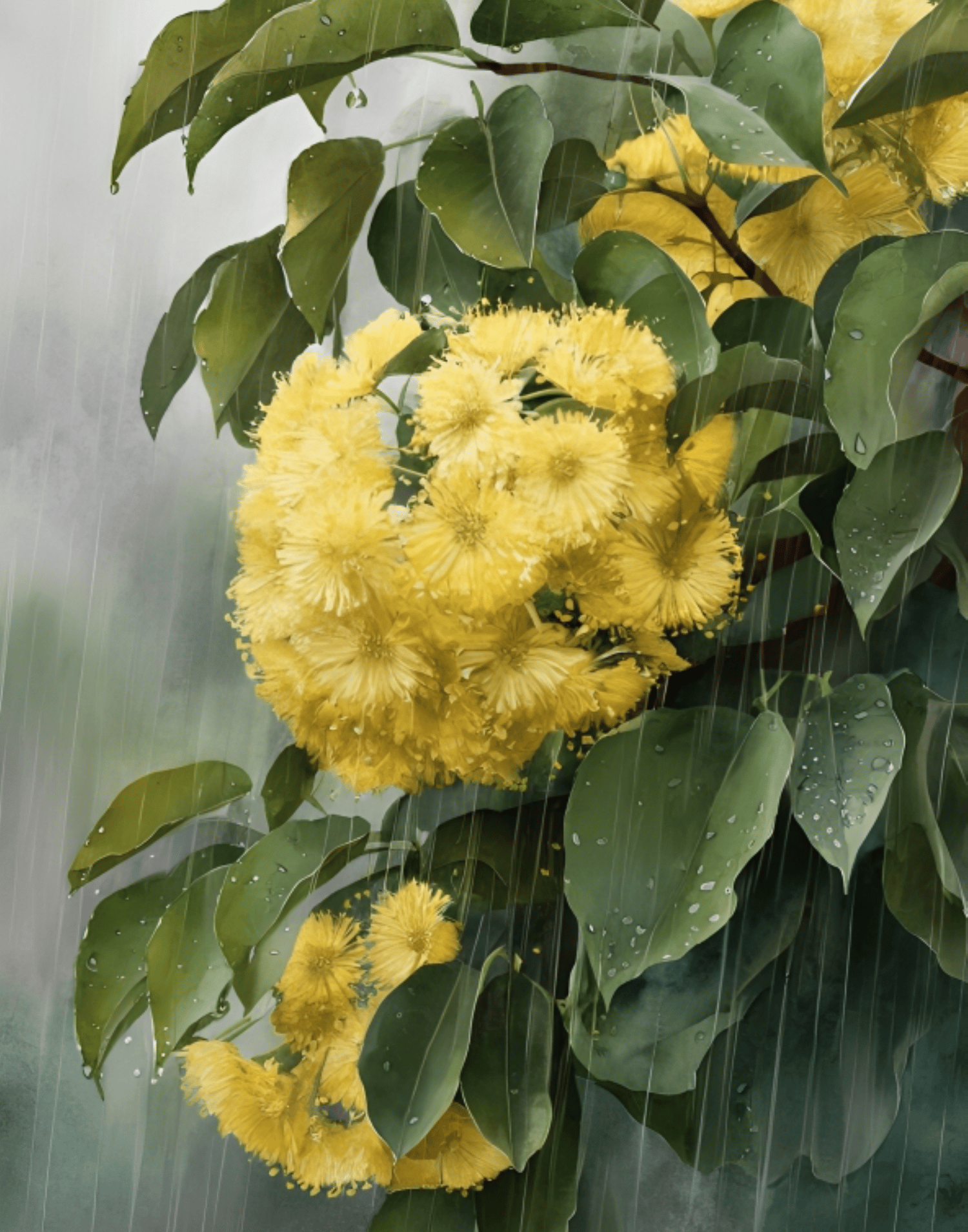 Wet Flower, Green Leaf painting, Bunch of Yellow wild, Flower, Rainy Season Flower, Rain Beauty, Monsoon Beauty, Wild Flower, Flower Beauty, Watercolor Floral Art, Wall Art, Digital Art, Best Flower.