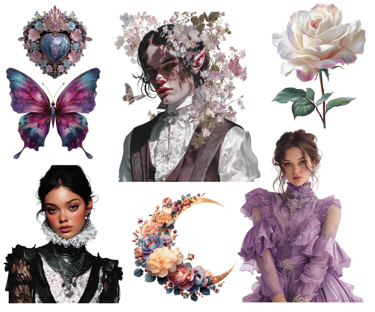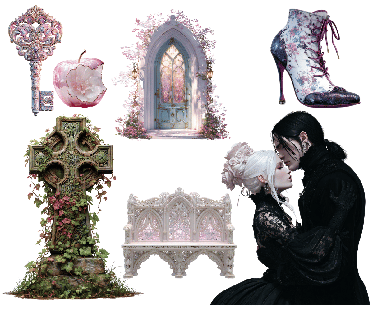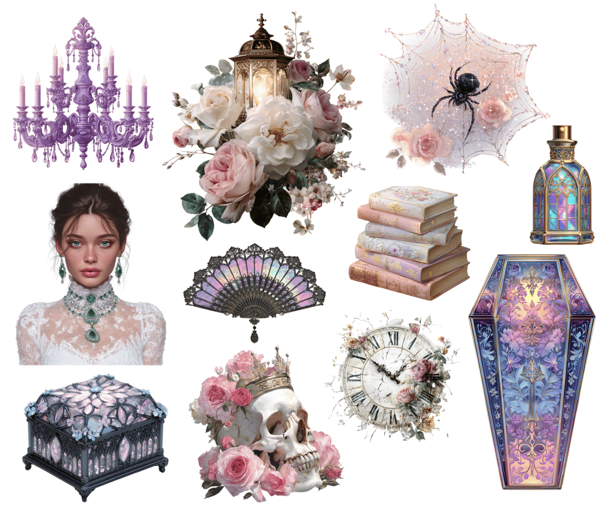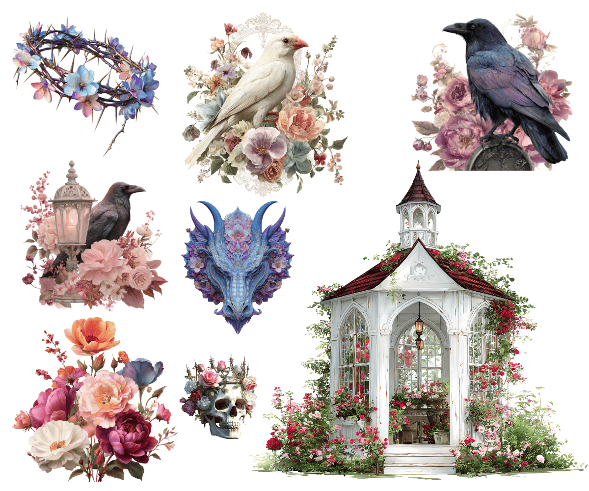 Elevate your crafting projects with our Gothic Romantasy Clipart Batch #2 bundle. Perfect for instant download and sublimation design. Clipart includes elegantly styled elements suitable for crafting projects in gorgeous rich tones evocative of the romantasy aesthetic. Ideal for digital art, printable clipart, and crafting, this set is a must-have for creating charming arts and crafts designs. In fact, cut them out and place them on your planners to make for an extra special gift for an organizer.