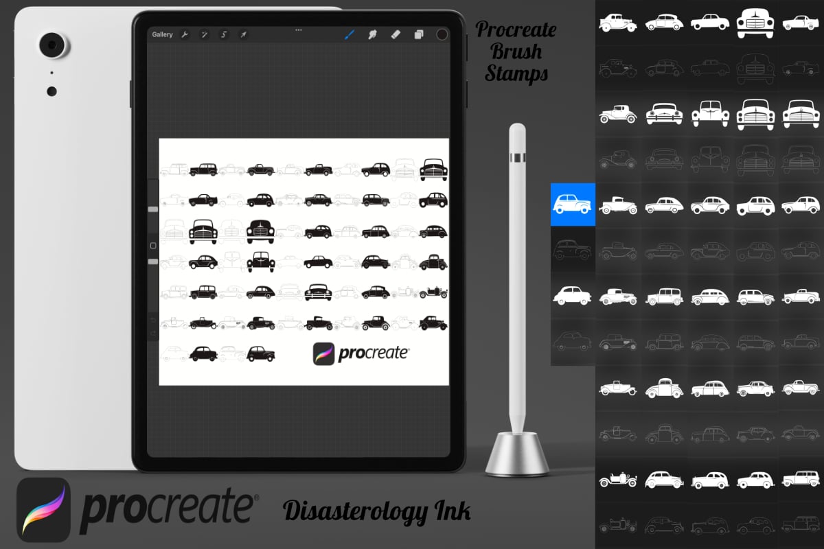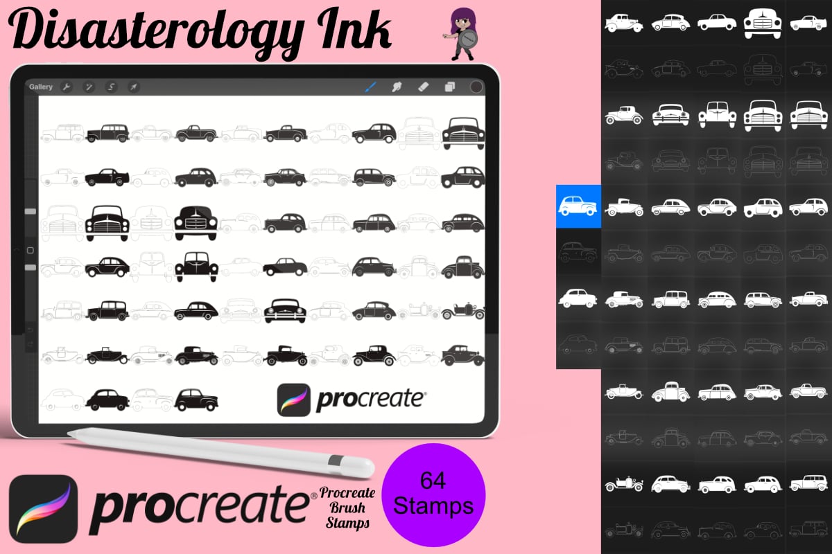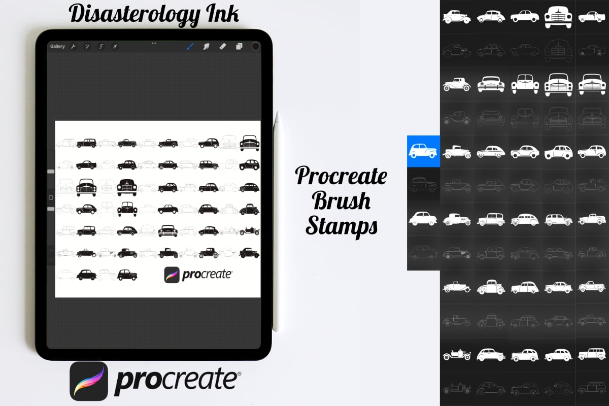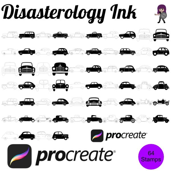 These 64 Cars stamps are perfect for making illustration projects or any procreate purpose. You can use these in any colour or opacity and they can be resized to best fit your art. You need Procreate 5.0.8 or 5X, an iPad, and an Apple Pencil. Also, these stamp brushes are not pressure sensitive and can be used with third party stylus, Apple Pencil or even your finger. You can change the colour, size and opacity of these stamps.