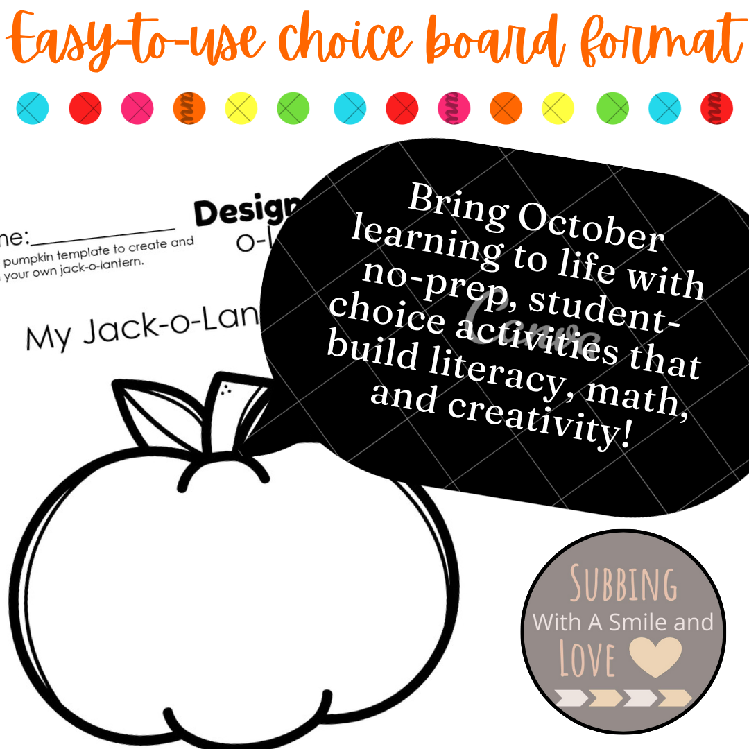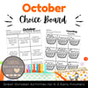 October Choice Board Activities | No-Prep Literacy & Math Centers K-2