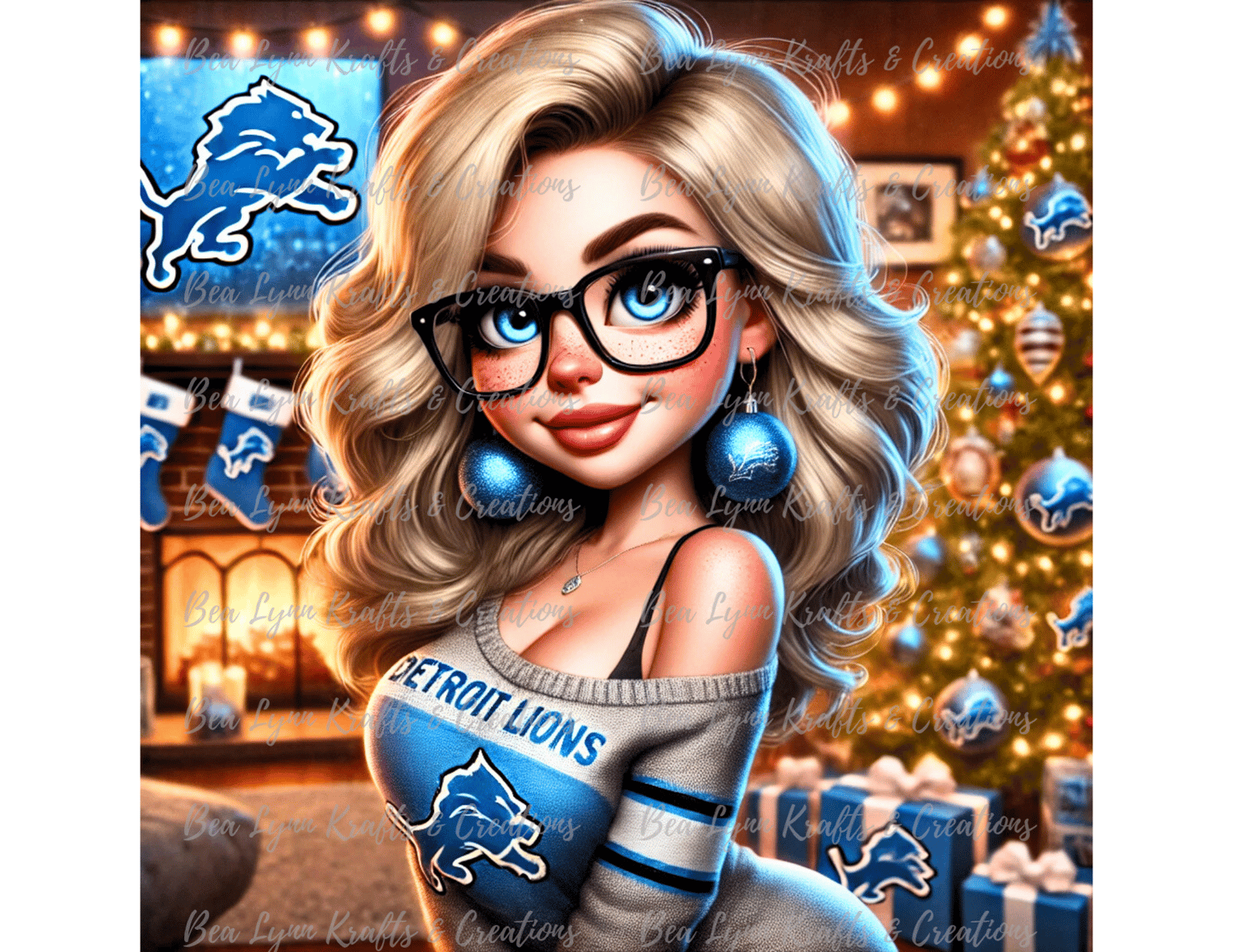 Celebrate the holidays in true Detroit Lions style with this stunning Christmas-themed sports fan PNG! Dressed in cozy Lions-inspired holiday attire, this vibrant illustration features a festive home filled with team-colored ornaments, garlands, stockings, and a glowing Christmas tree decked out in blue, silver, and black. With a roaring fireplace and twinkling lights, this scene is perfect for fans who want to combine their team pride with holiday cheer!