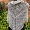 The shawls are designed using mostly 4ply yarn, with one laceweight (Ceridwen) and two that work well in either 4ply or laceweight (Calon Cariad and Marianne Half Hap).