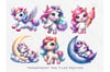 Perfect for digital scrapbooking, children's party invitations, or even just for unicorn enthusiasts, this set of 40 pastel-toned, high-resolution PNG images is instantly downloadable. Each watercolor unicorn features glittering eyes, rainbow manes, and adorable expressions, all in an adorable Kawaii style. Castles and floral elements add to the fantasy charm, ensuring your creations captivate and inspire. Bring these enchanting creatures to your next project and add a touch of kawaii magic!