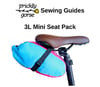 Digital sewing guide for a small 3L bike seat pack for carrying your ride essentials such as repair equipment, a small clothing layer and/or snacks
