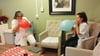 Three nurses popping balloons