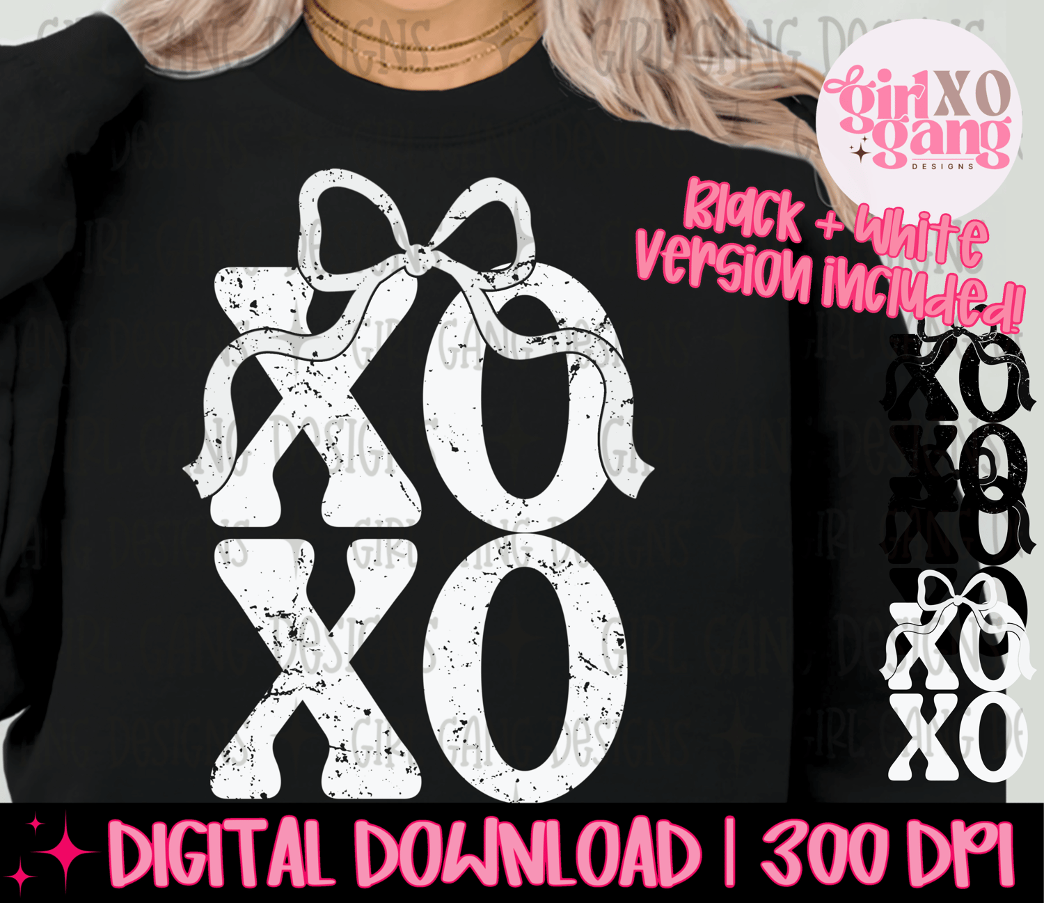 Xoxo coquette distressed and solid version black and white included png, valentine xoxo simple coquette png