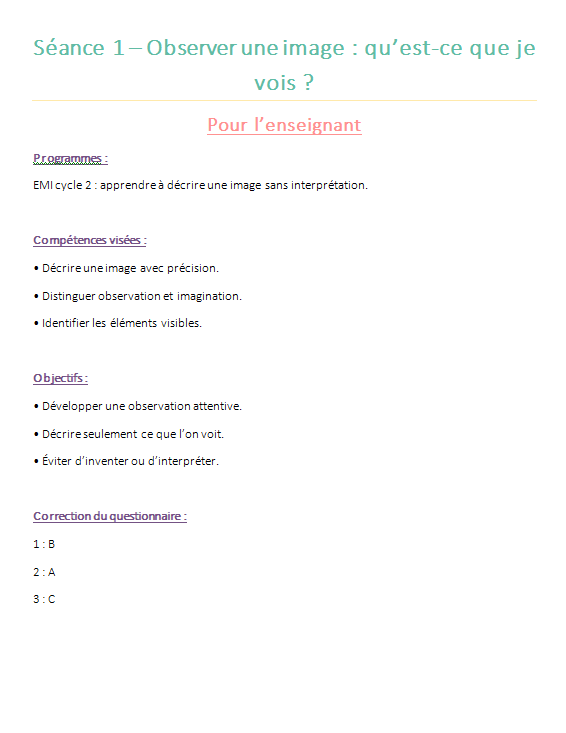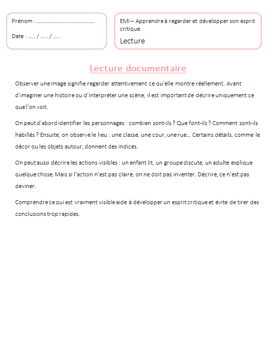 👀 Séquence EMI Cycle 2 – Apprendre à regarder & développer son esprit critique (5 séances clés en main)