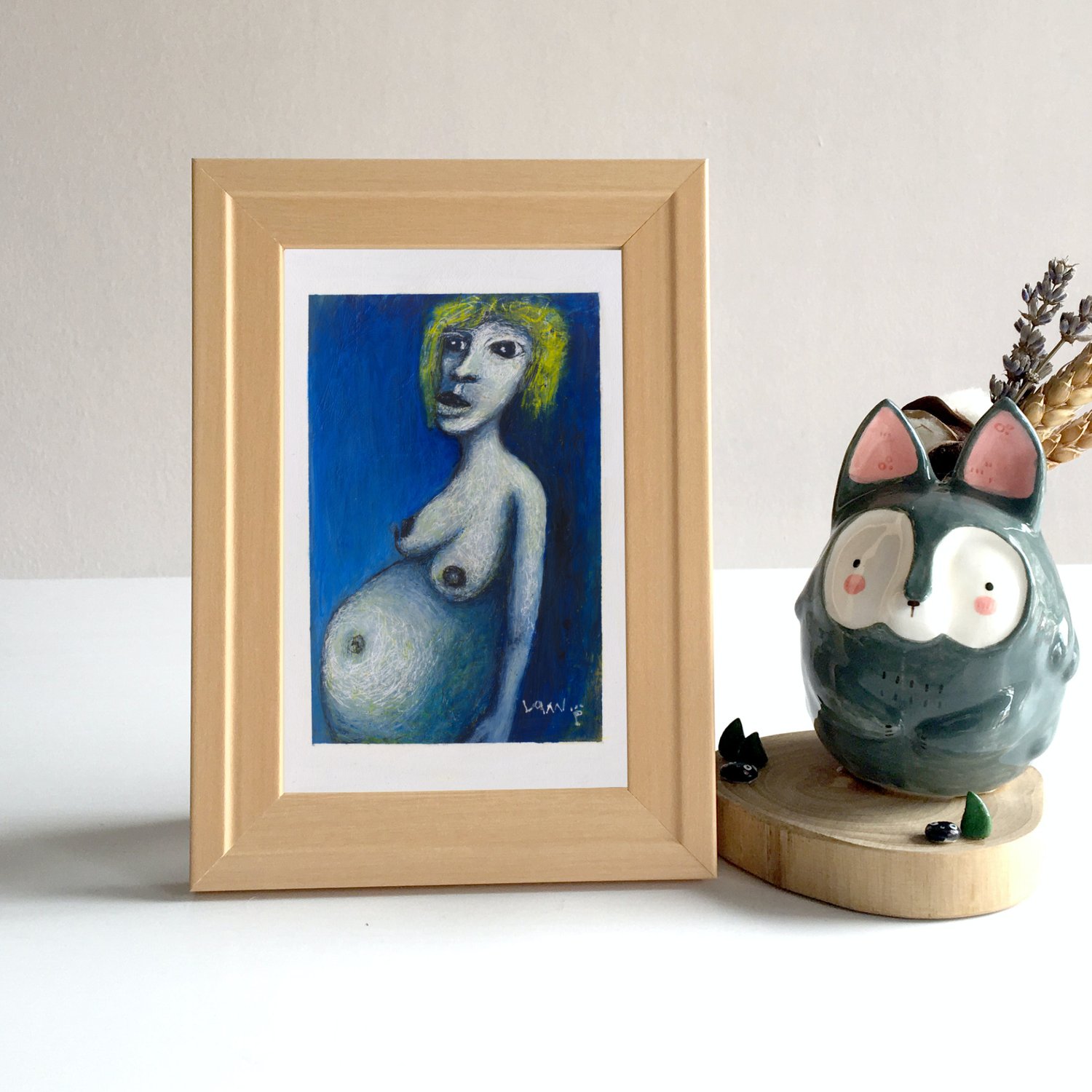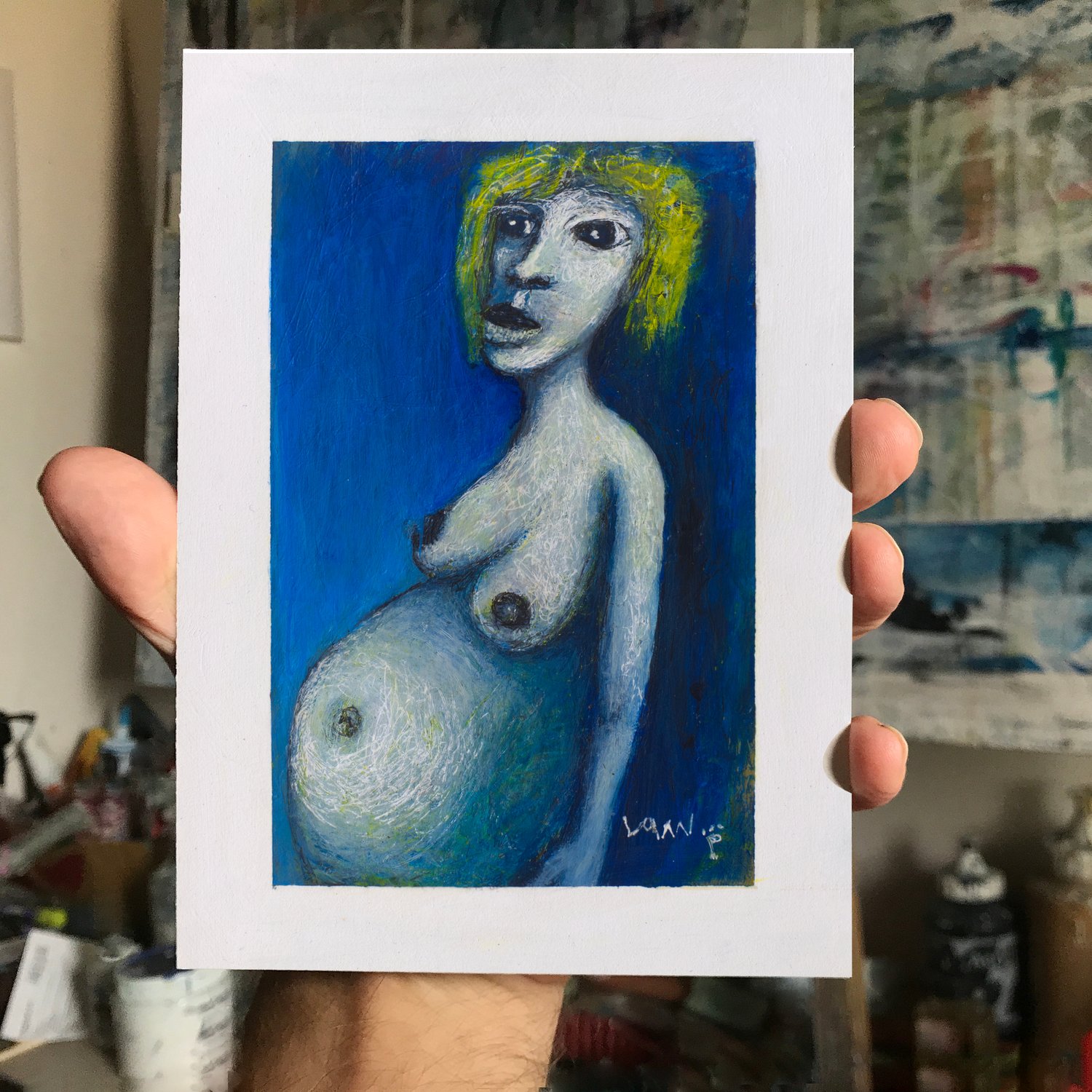 An Expecting Mother Painting by Ken Law 5x7 Inch Abstract Portrait