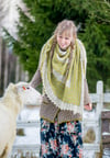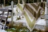 Saana is a lovely asymmetric shawl with alternating garter stitch stripes and lace sections.