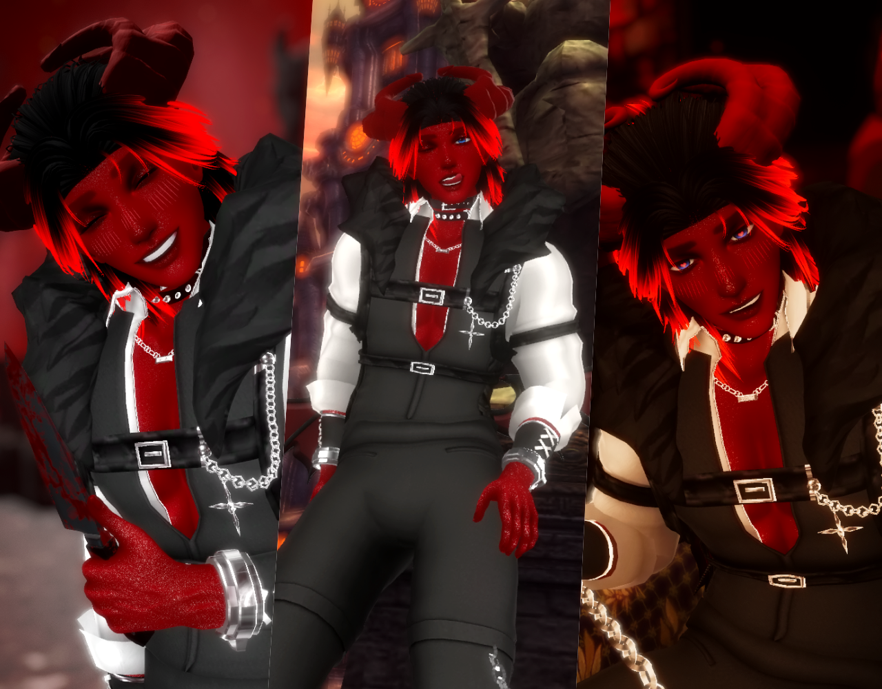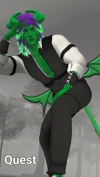 - Both hairs (Quest Ponytail - Crow Hair), Pants Strings, Arm Chains, Wings, Tail